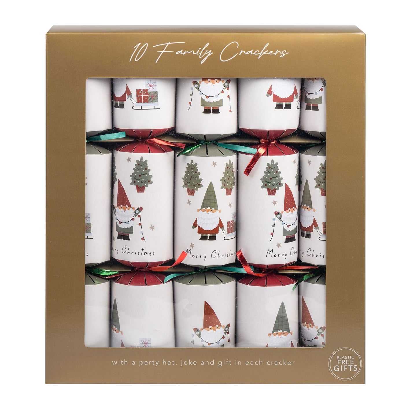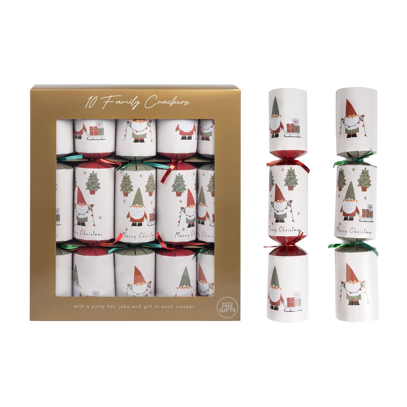 Spread holiday cheer with this festive set of 10 family Christmas crackers! Each cracker is adorned with whimsical gonk designs, adding a touch of Scandinavian charm to your celebrations. Designed to bring joy and laughter to the entire family, these crackers are perfect for festive gatherings and will be a hit with guests of all ages. Packaged in an elegant gift box, these crackers are perfect as a gift or for dressing up your table.