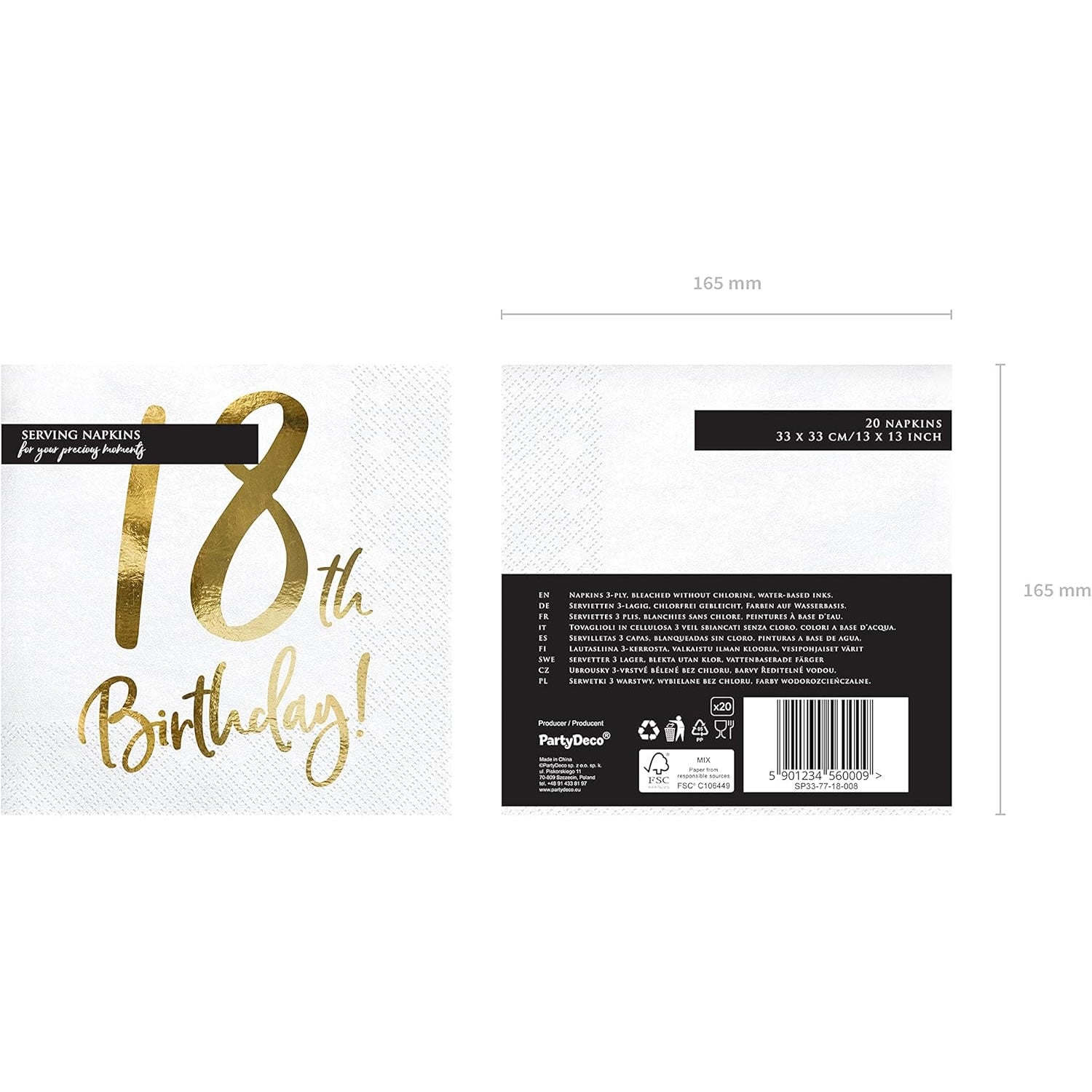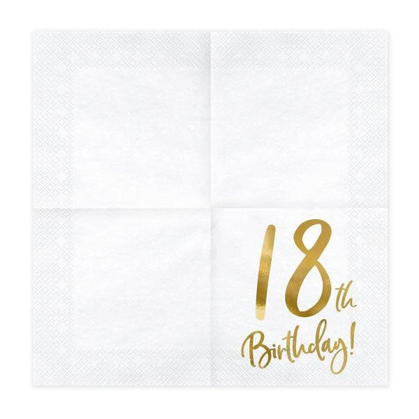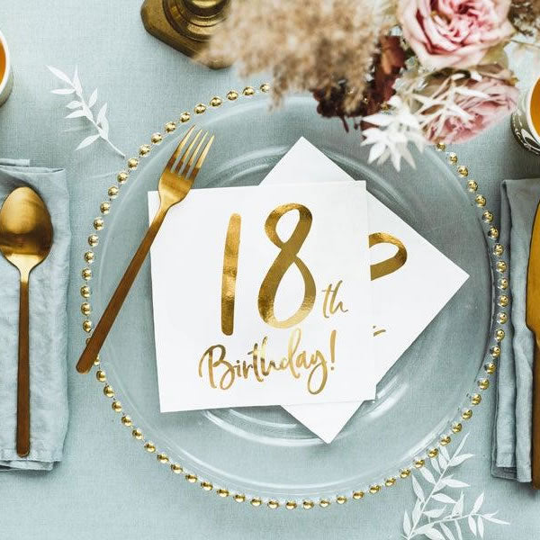 Elevate your loved one's 18th Birthday décor with these elegant paper napkins with gold foil '18th Birthday' inscription. The perfect decoration for your loved ones milestone birthday.