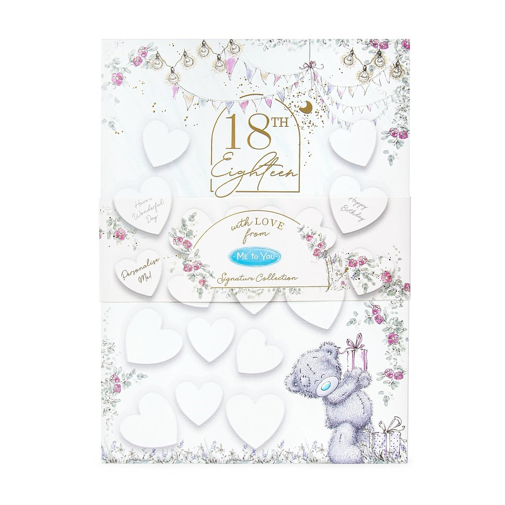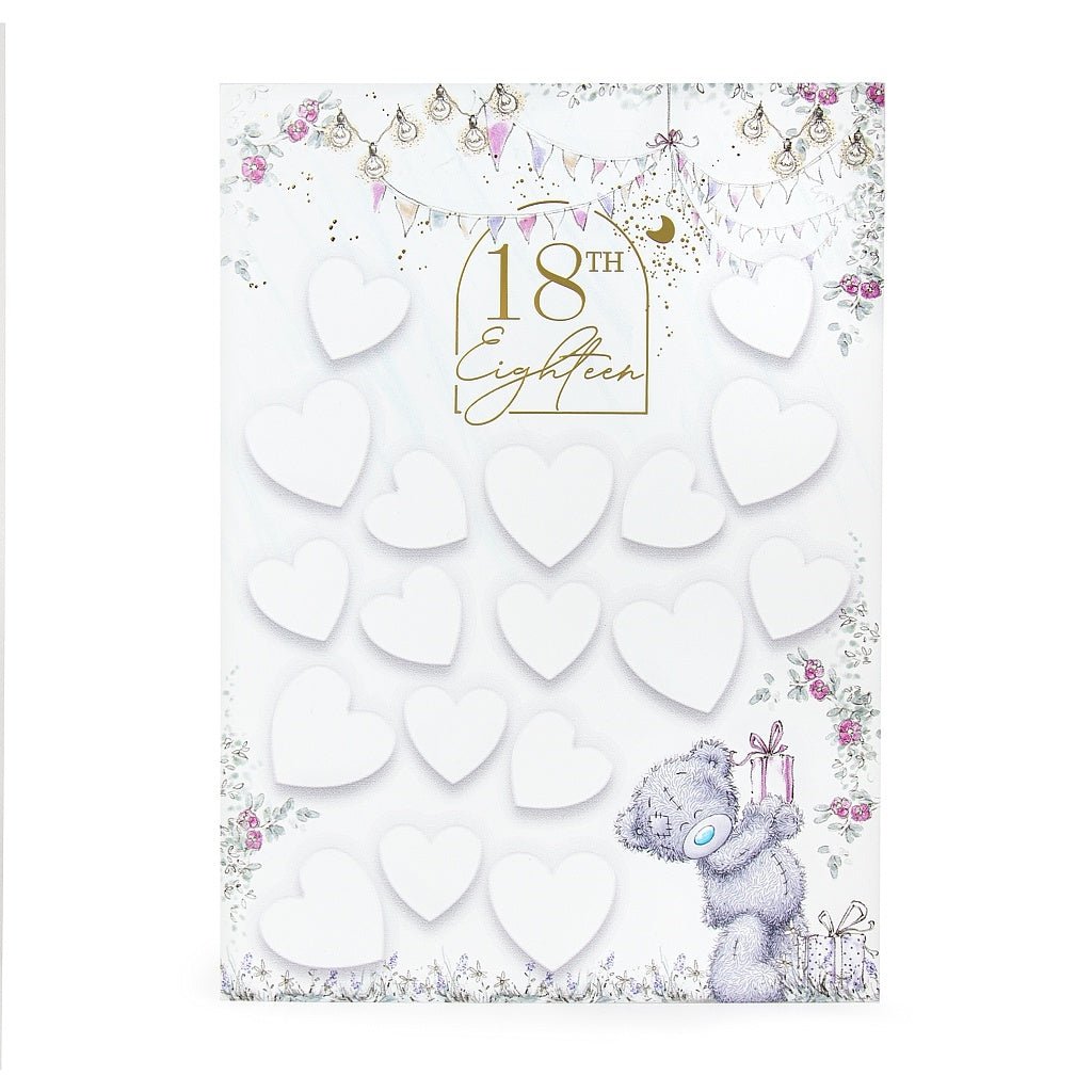 Create a special 18th birthday keepsake for a loved one to keep forever. The plaque features gorgeous Me to You artwork of Tatty Teddy surrounded by hearts that can each be personalised with a special message to celebrate this important milestone. Perfect for birthday parties or family get togethers, each guest can leave their own special message with their choice of pen to create a thoughtful memento for the recipient to treasure.