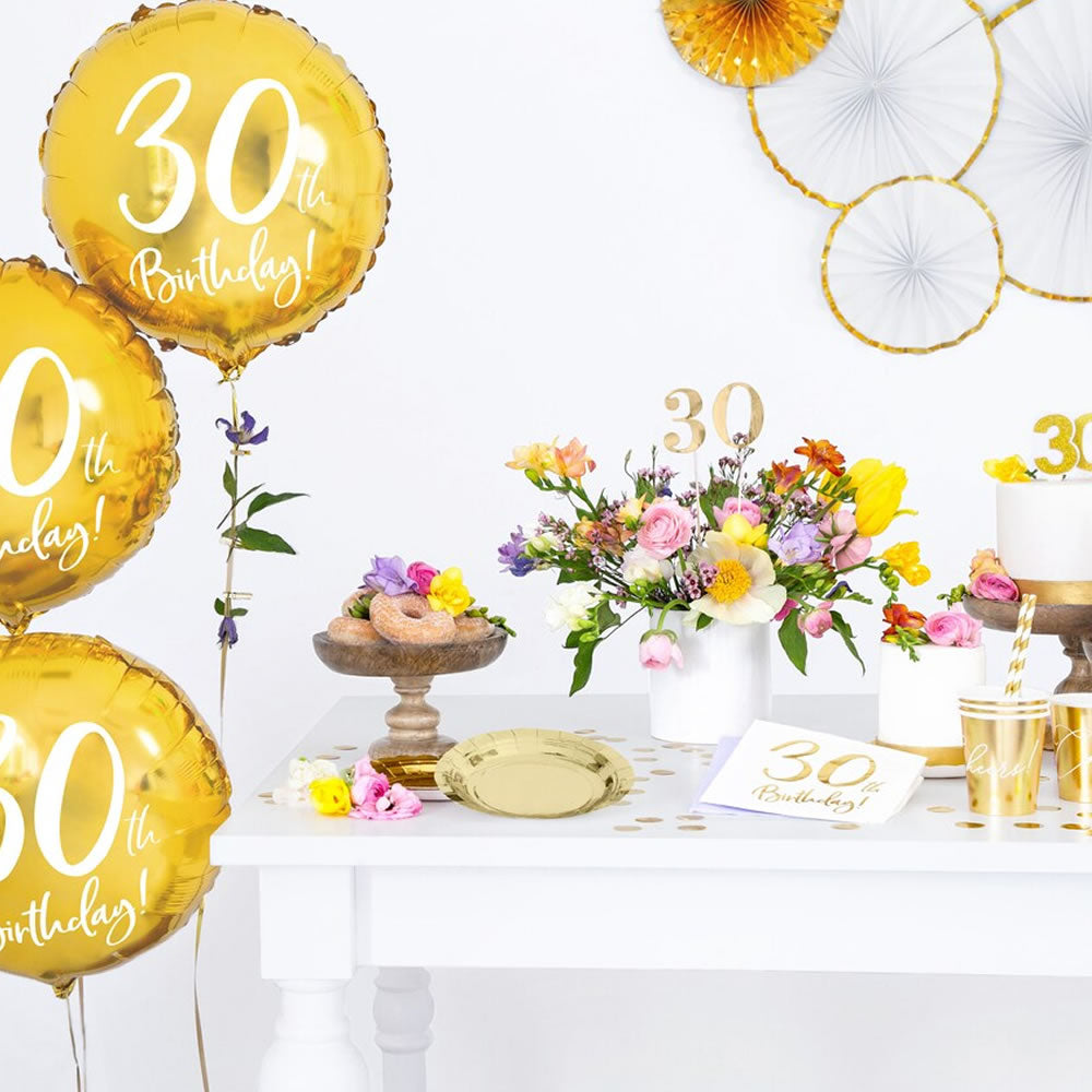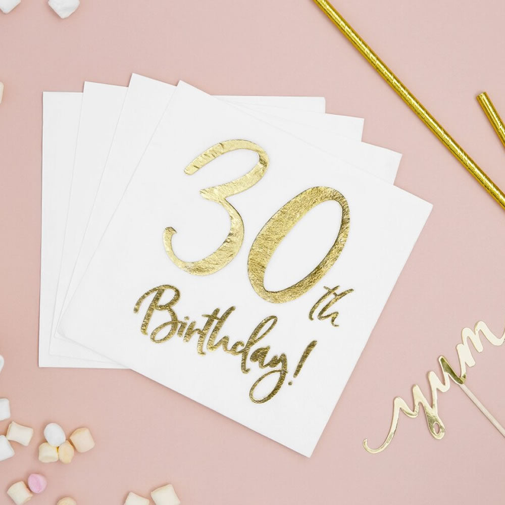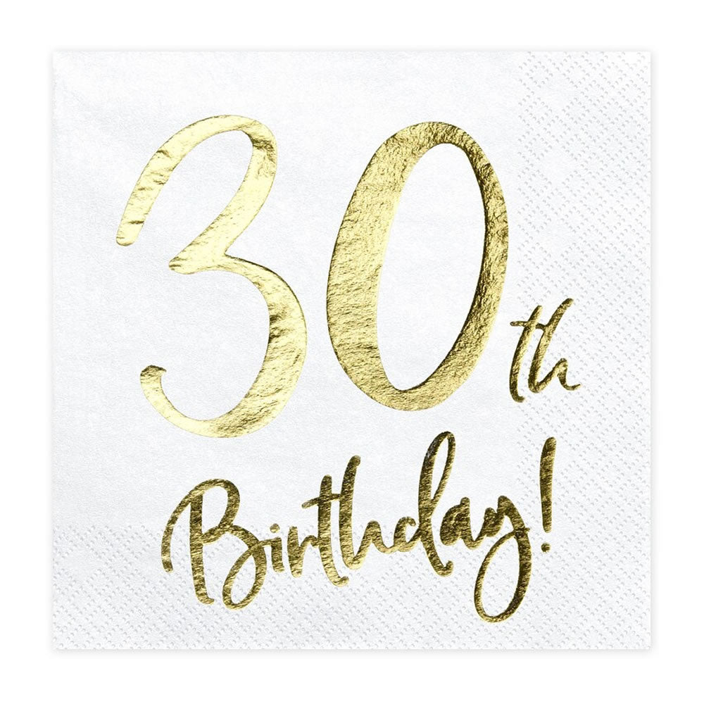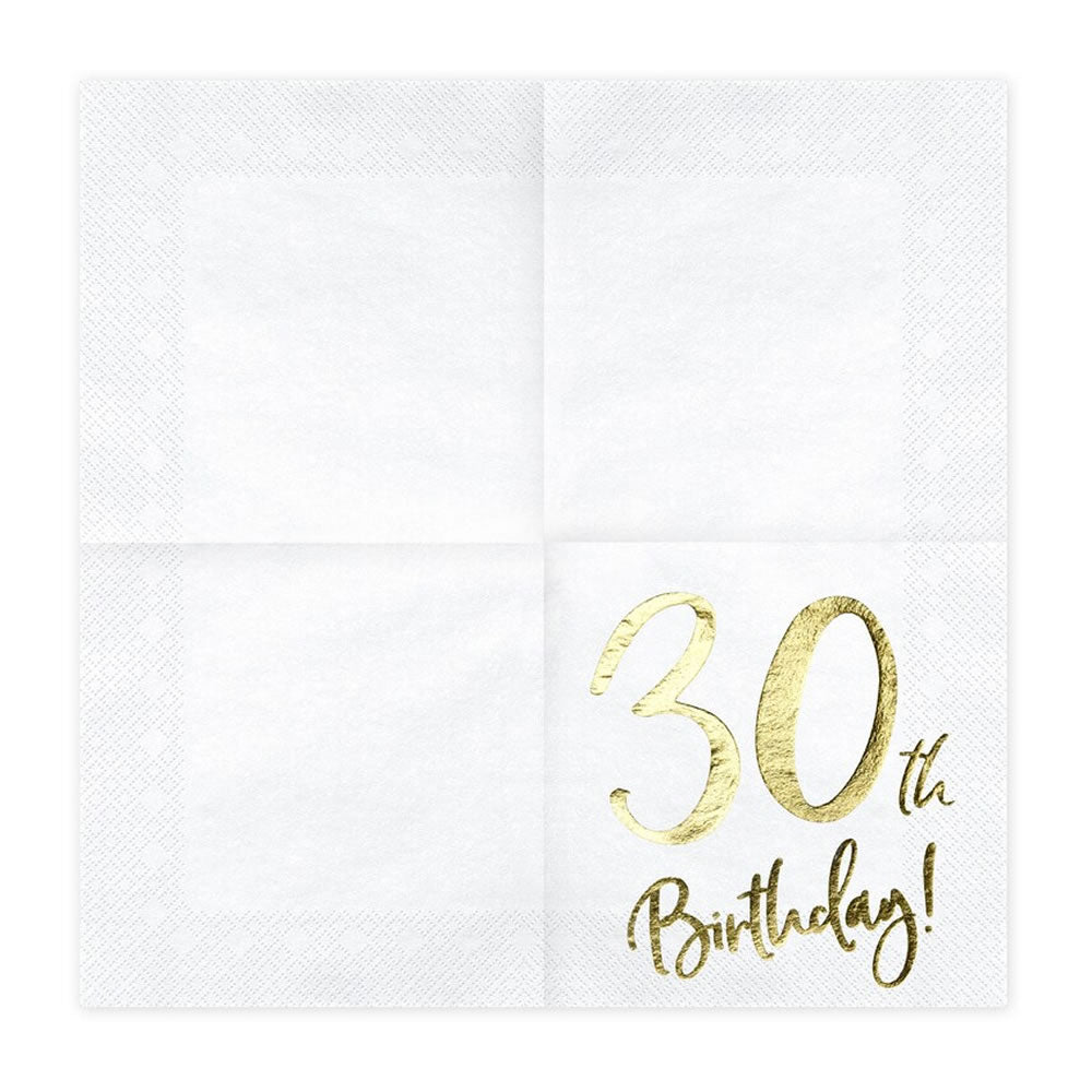 Elevate your loved one's 30th Birthday décor with these elegant paper napkins with gold foil '30th Birthday' inscription. The perfect decoration for your loved ones milestone birthday.