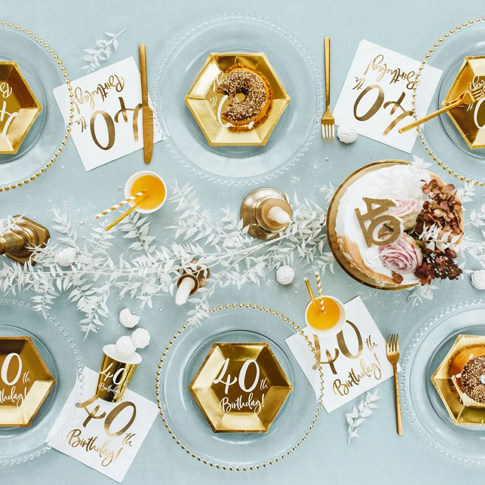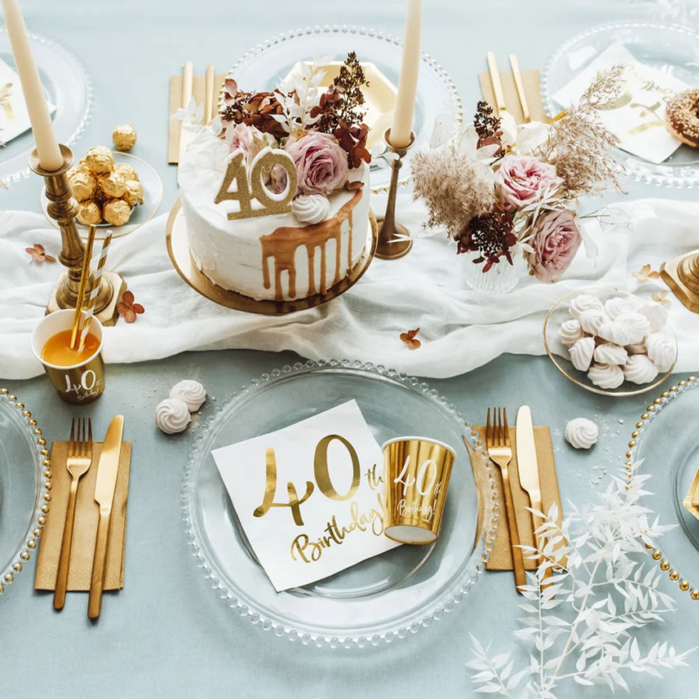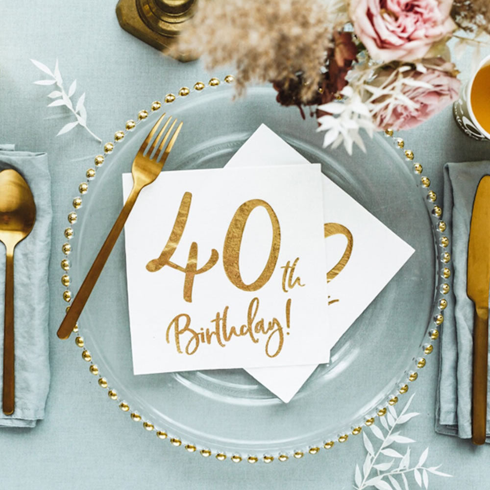 Elevate your loved one's 40th Birthday décor with these elegant paper napkins with gold foil '40th Birthday' inscription. The perfect decoration for your loved ones milestone birthday.