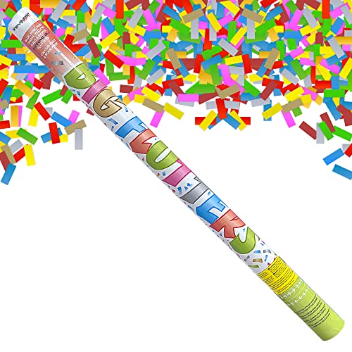 Confetti Cannons are perfect additions for Weddings, Gender Reveals, Birthday Parties, Business Events, New Year's, and more. These cannons have compressed air activation with simple twist and shoot mechanism (no lighting required). Suitable for indoor and outdoor use (please read safety instruction on pack before use).