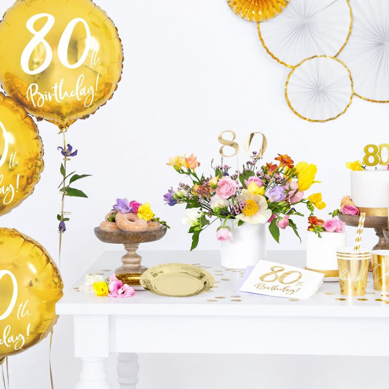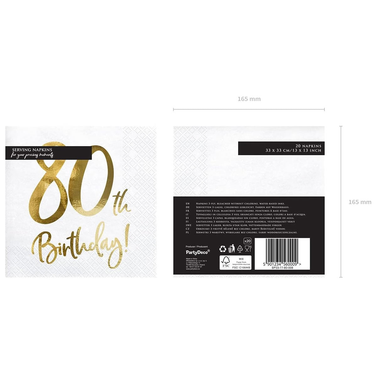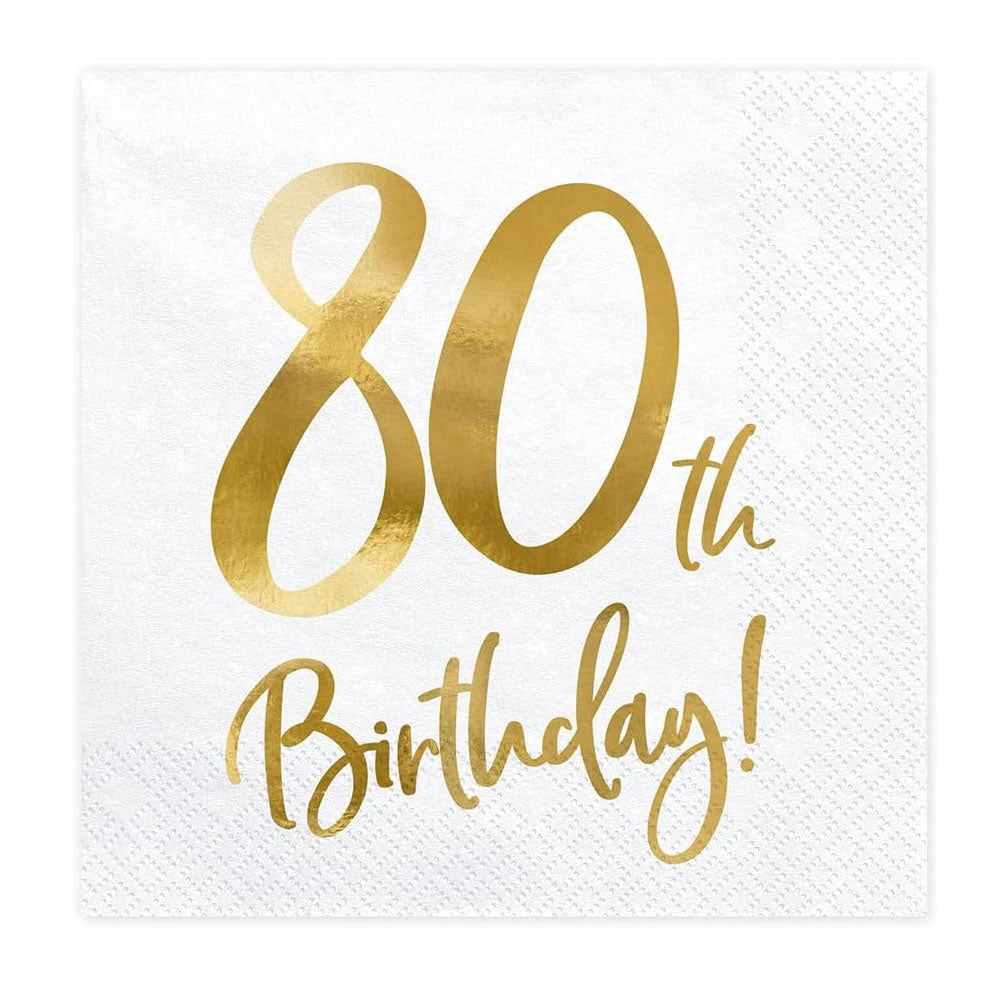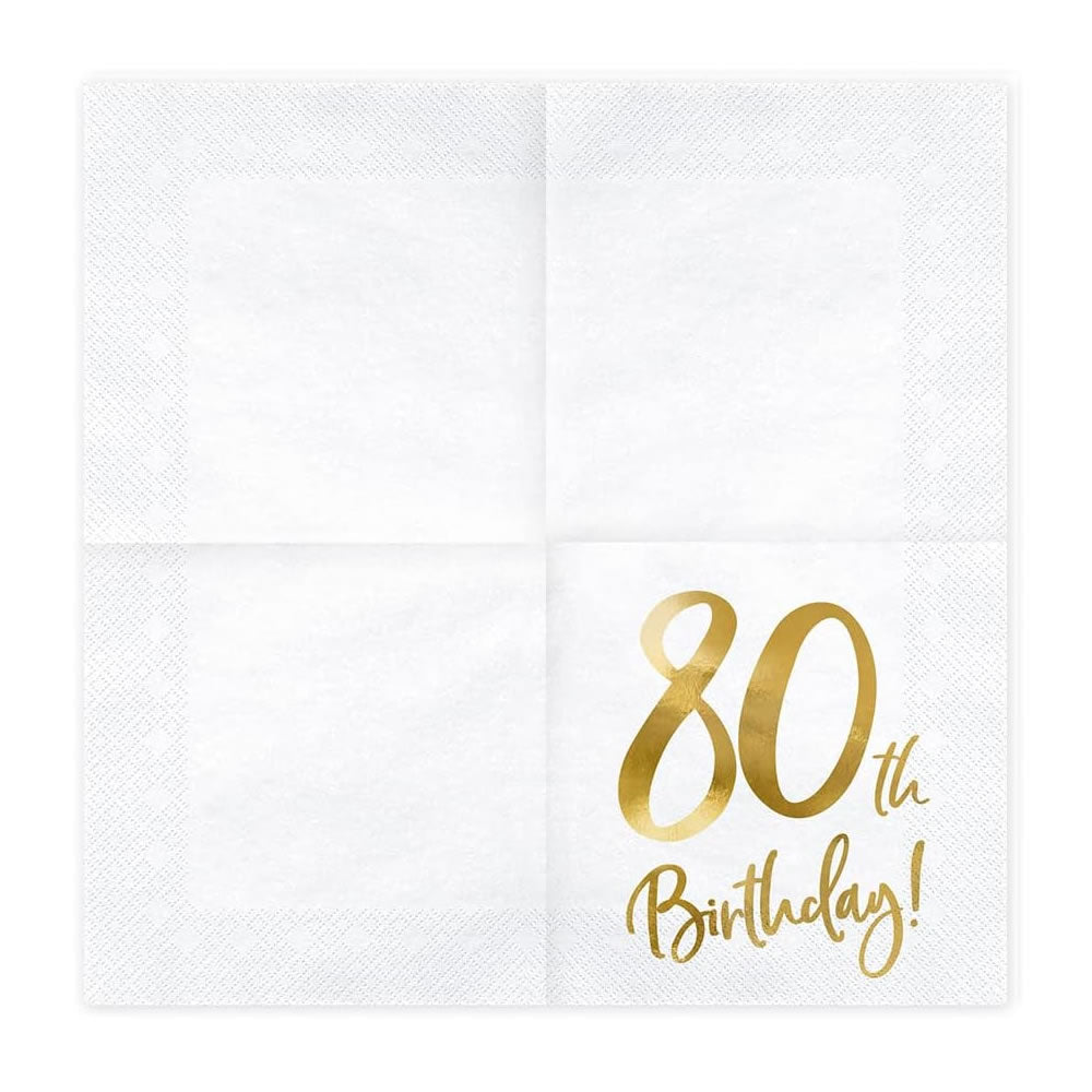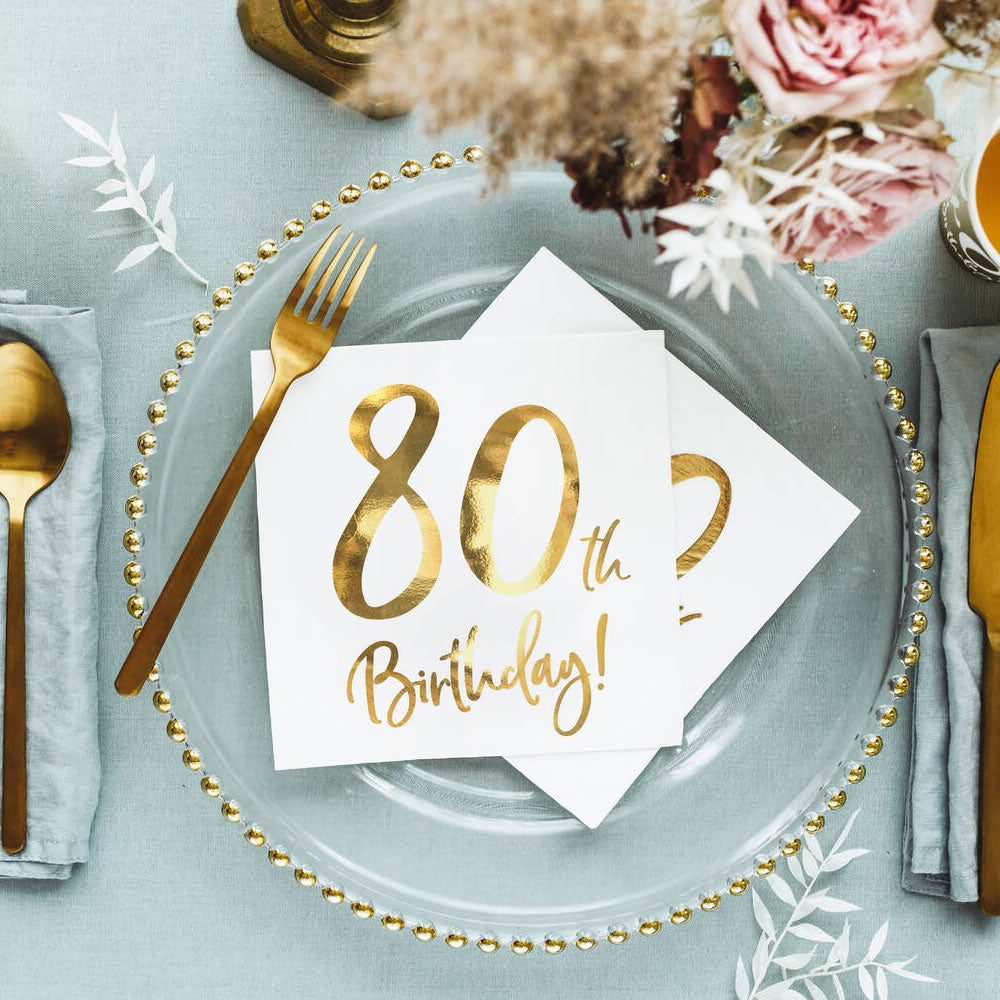 Elevate your loved one's 80th Birthday décor with these elegant paper napkins with gold foil '80th Birthday' inscription. The perfect decoration for your loved ones milestone birthday.