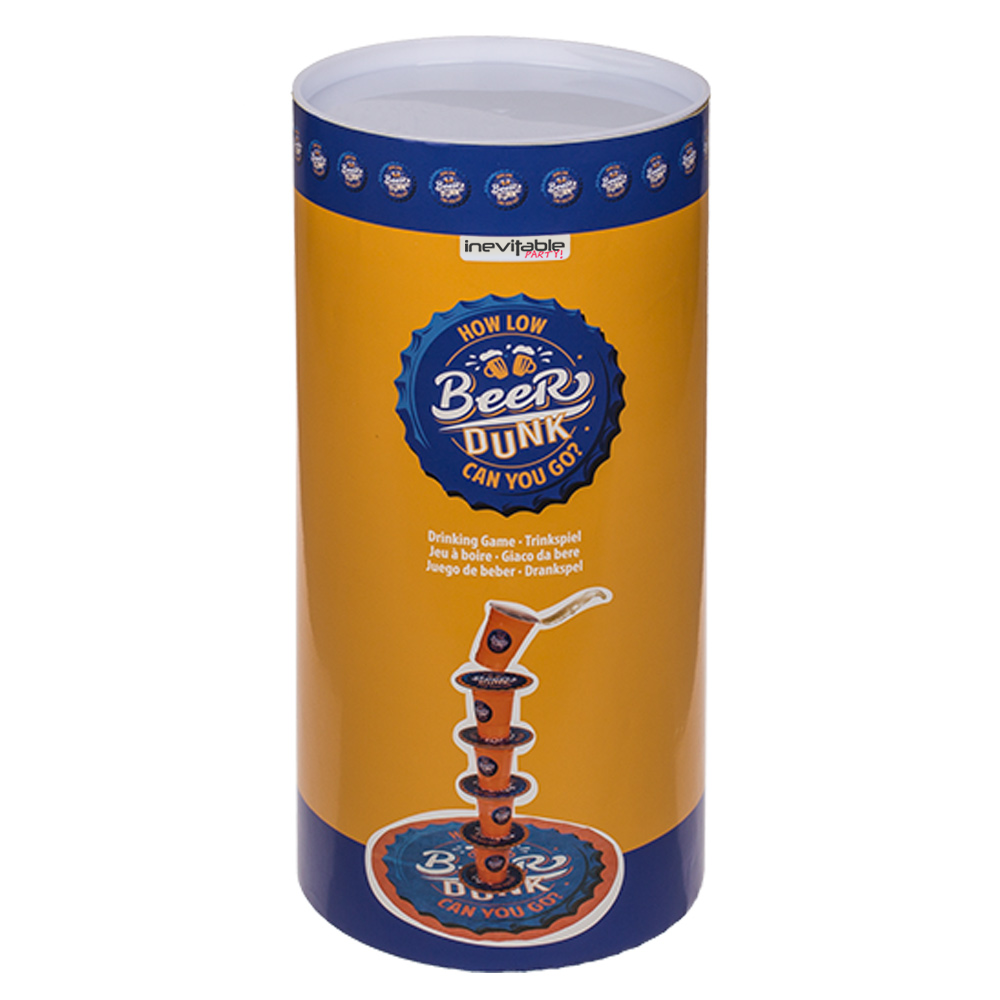 The beer dunk drinking game is an exciting contest game to test how many cups of beer can be drunk without knocking them over and without using any hands. The winner is the player that comes furthest without knocking over the tower!