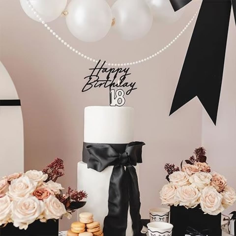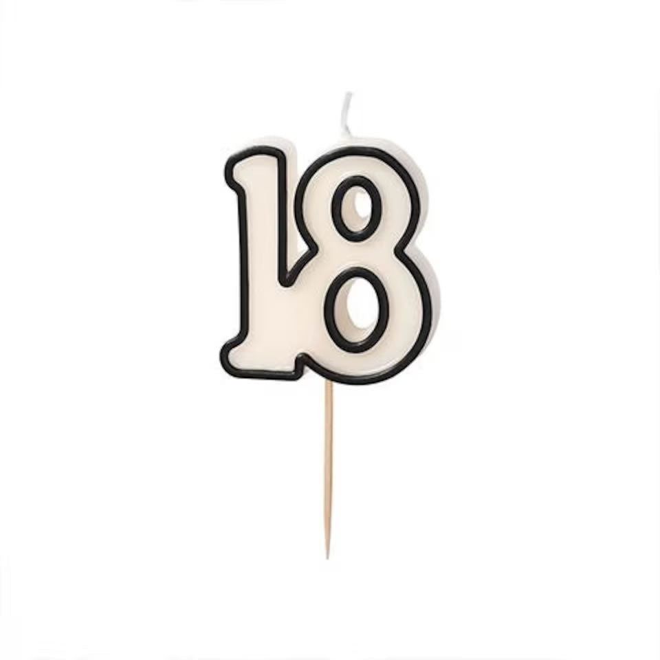 Celebrate 18 in style with this bold black and cream number 18 candle. At 5.5 cm tall, it adds a sharp, striking touch to any cake, making your milestone party unforgettable. Perfect for both sleek and classic themes, it’s a daring way to mark the occasion.