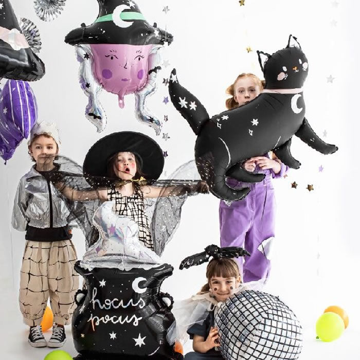 This Large Black Cat Foil Balloon features a holographic detail and comes in a sleek matt black colour. The puurfect decoration for Halloween celebrations or spooky parties.