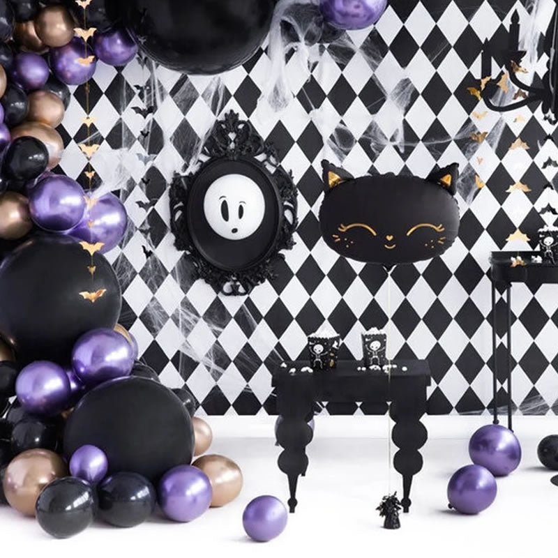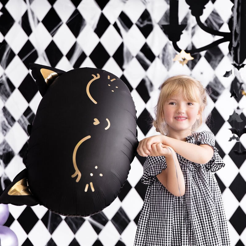 Add a feline touch to your next party with our Black Cat Foil Balloon! Perfect for cat-themed birthdays or Halloween, this cute balloon features a luxurious gold metallic foil design. Its matt black finish adds a touch of elegance to any celebration.