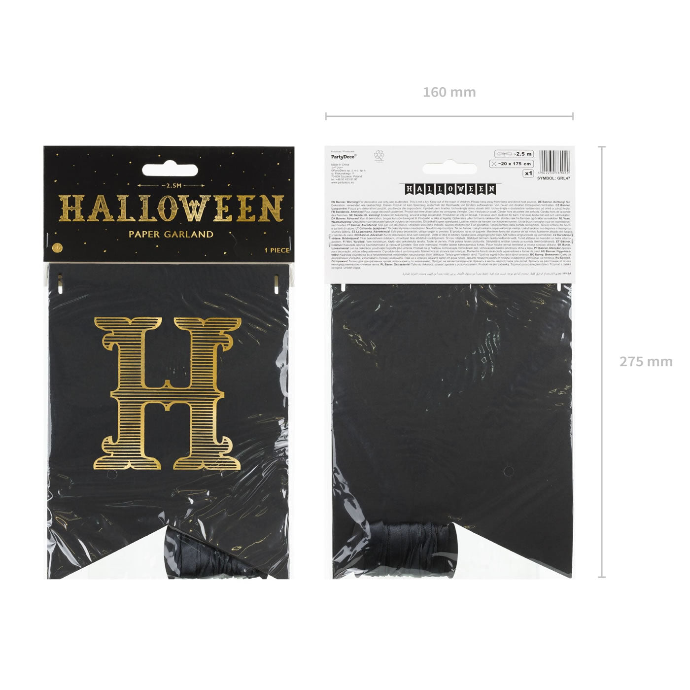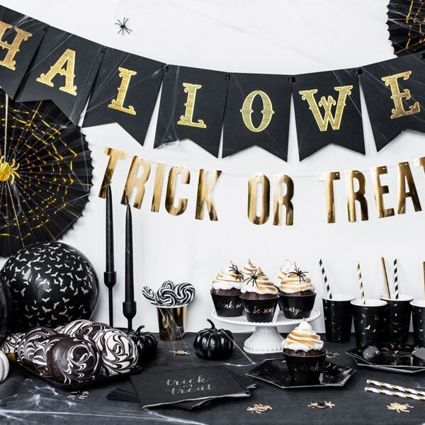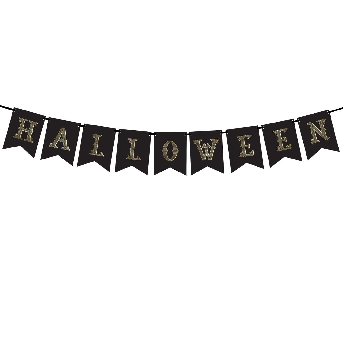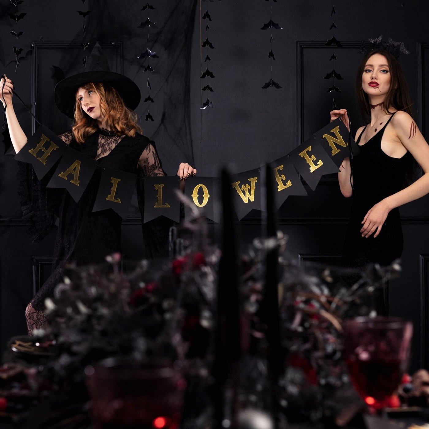 This decorative black banner with gold accent lettering is perfect for welcoming trick-or-treaters to your home. Hang it over your door, buffet table, or on the wall for a spooky photo backdrop. The banner is DIY and comes with 9 letter flags and 2.5m of ribbon. It is very easy to assemble and adds a fun touch to your spooky celebration.