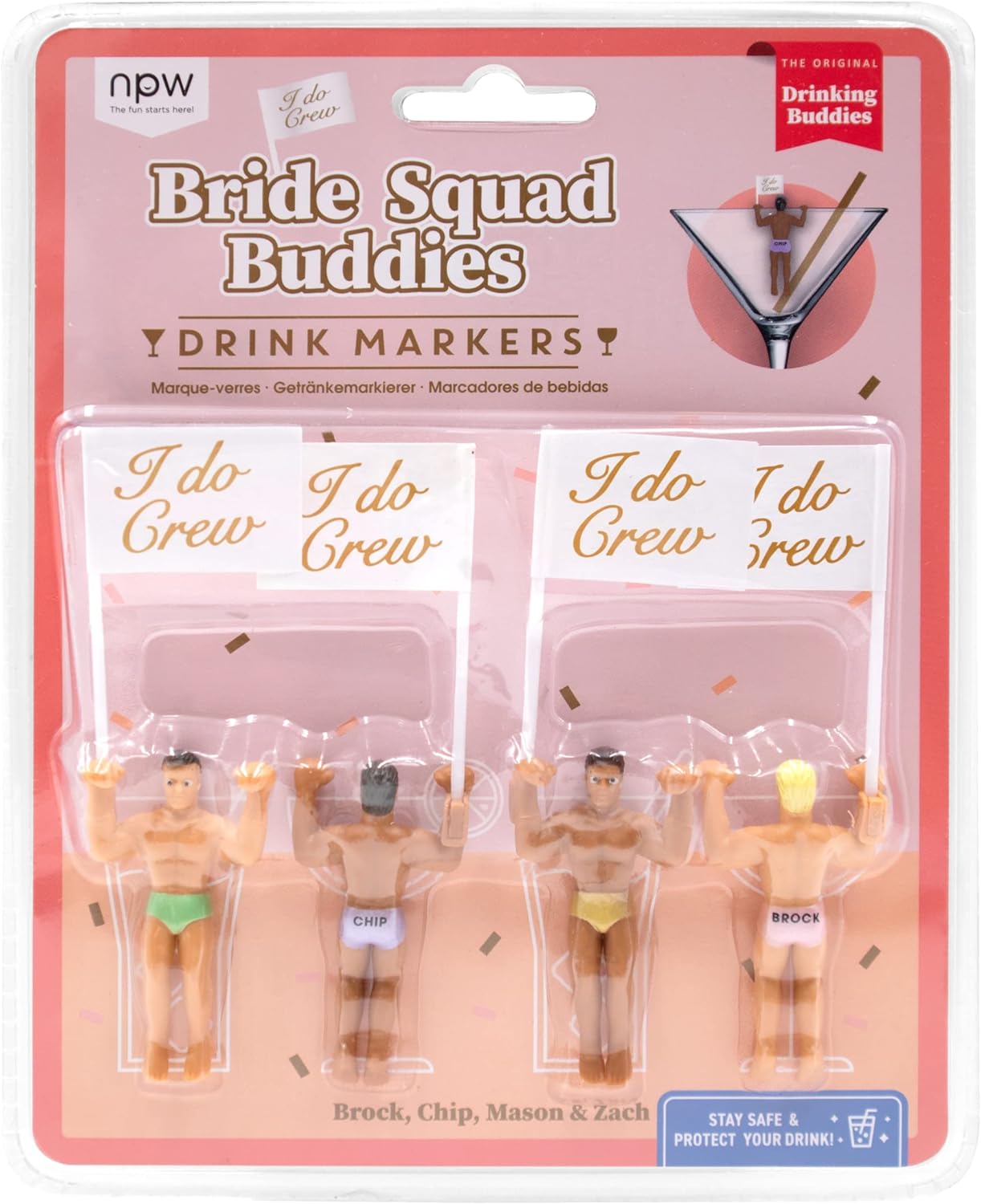 - BRIDE SQUAD DRINK BUDDIES: Turn up the heat at your bachelorette party with Zach, Chip, Mason and Brock. Mark your drink and avoid mix-ups with this package of 4 bride squad drinking buddies