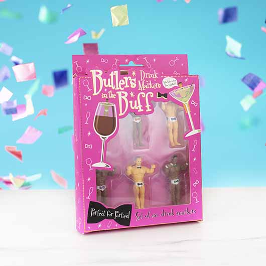 Butlers in the Buff are the hottest drink markers around, perfect for any night on the town! If the party gets wild, you won’t have to worry which drink is yours, as each butler has a different coloured bow tie & thong.