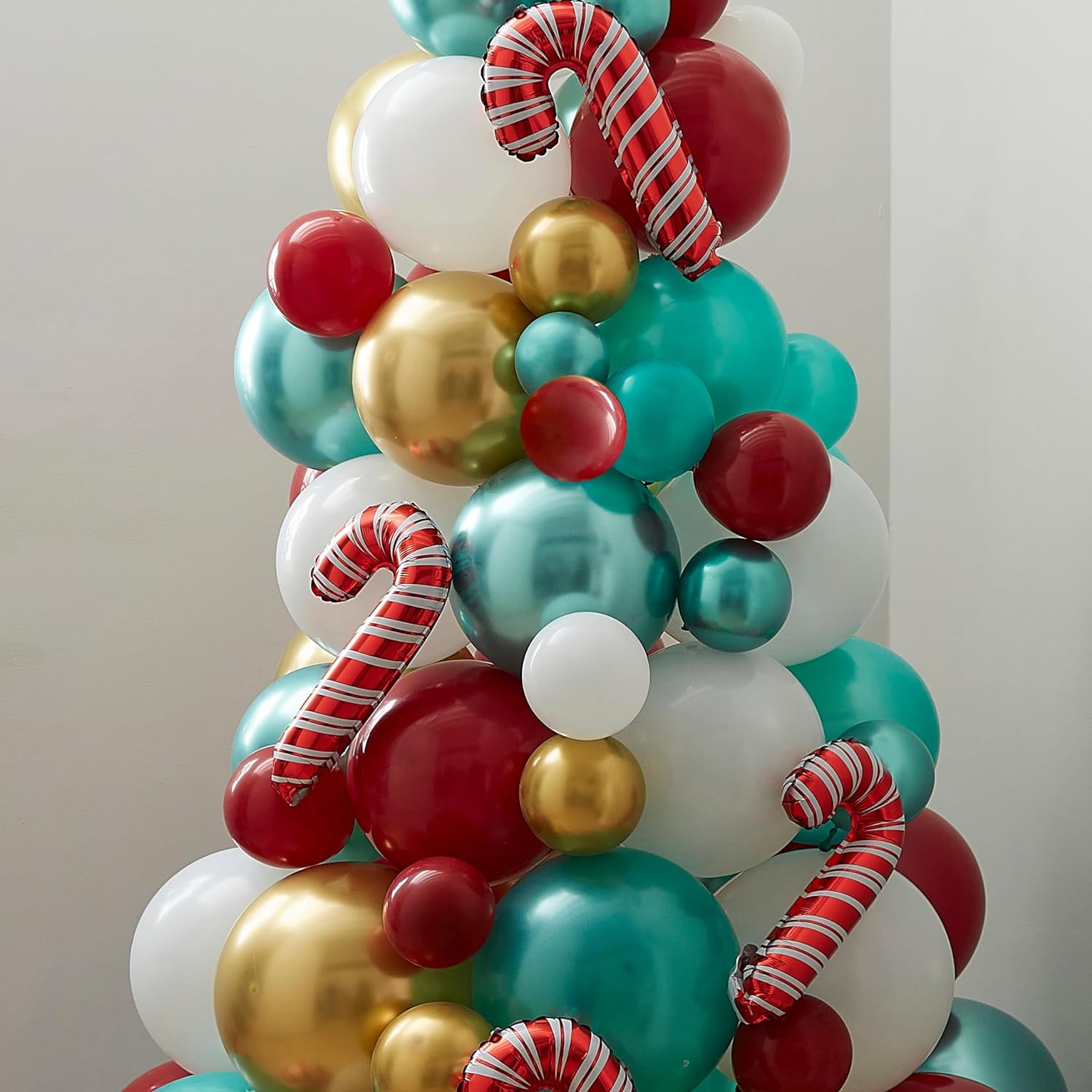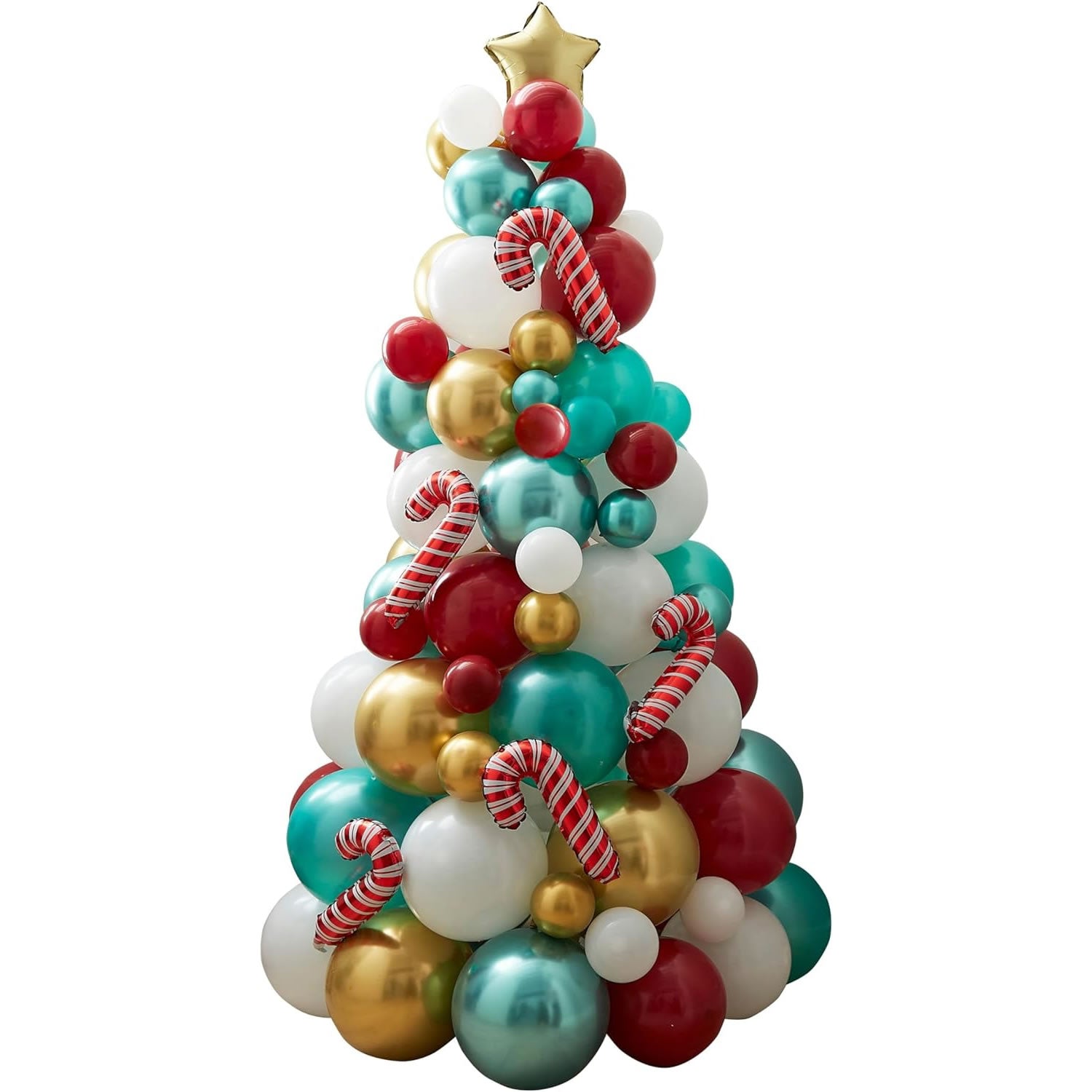 Get creative this Christmas and go all out with this stunning balloon Christmas Tree. Each balloon Christmas tree kit contains over 100 balloons in a variety of colours with gold star foil balloons.