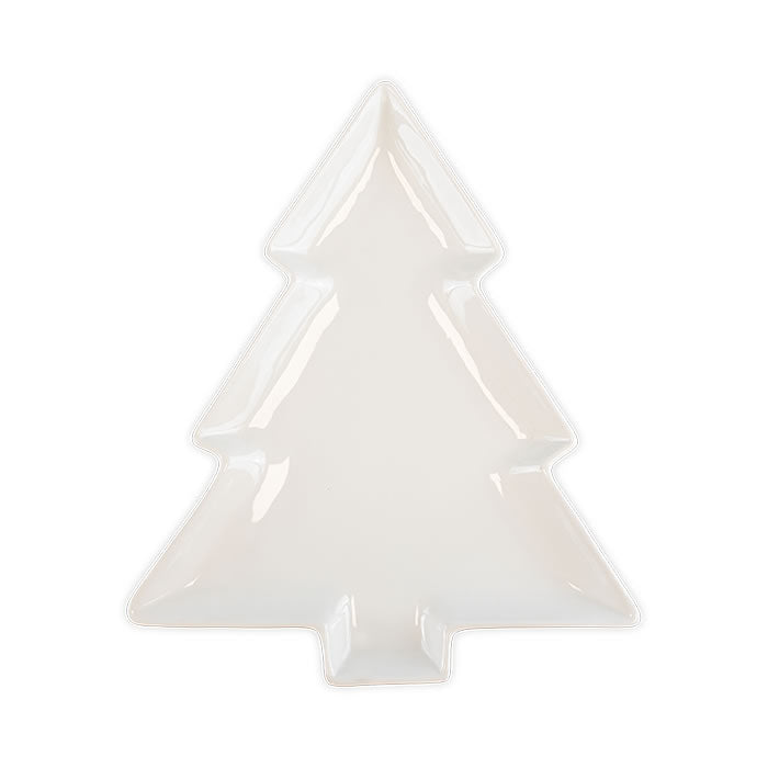 Shaped like a Christmas tree, this ceramic platter is perfect for serving holiday treats and snacks. Features raised edges to prevent spills and keep your food contained. Crafted from dolomite, a durable ceramic material, ensuring long-lasting use.