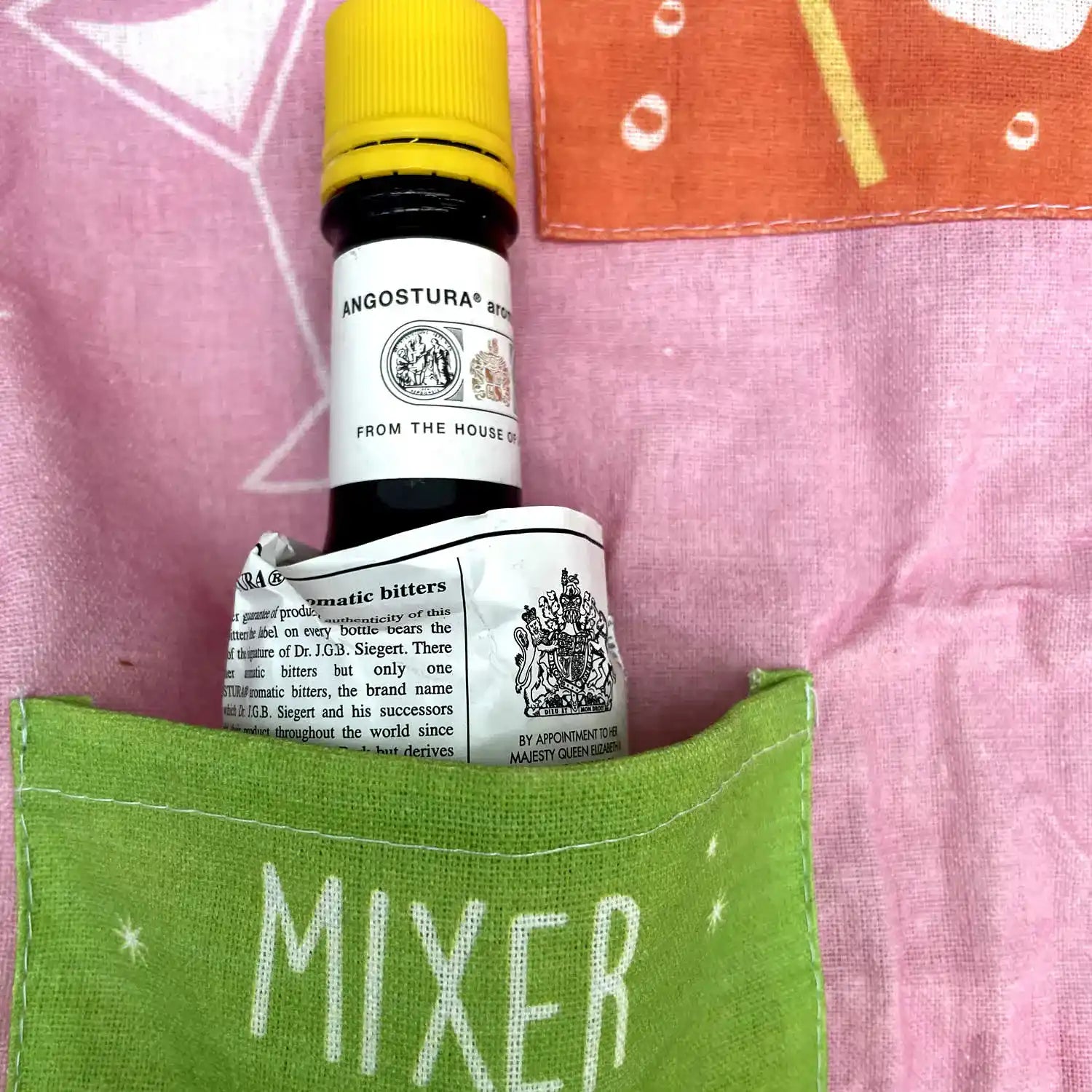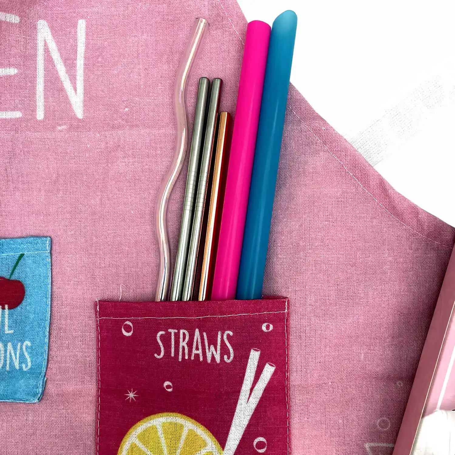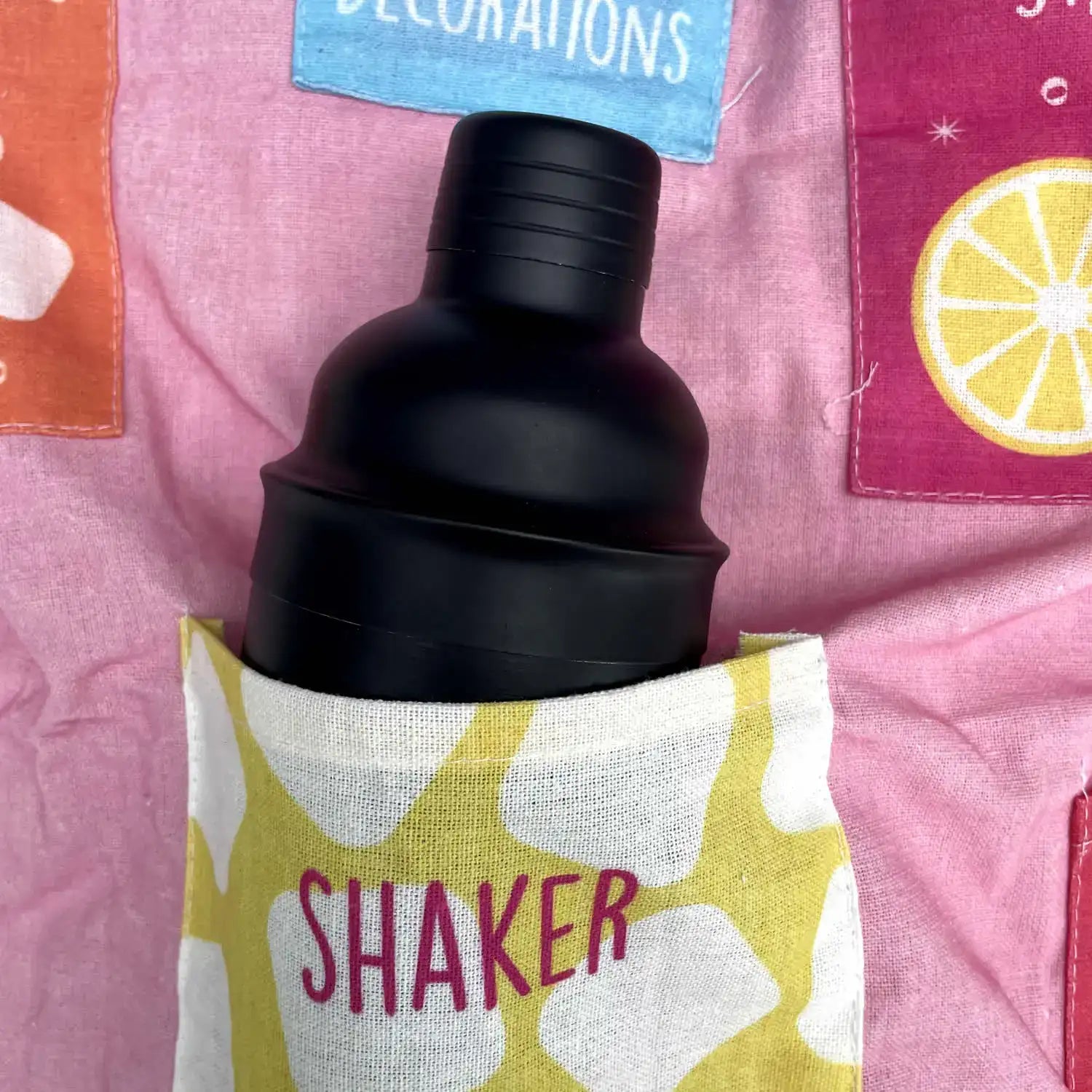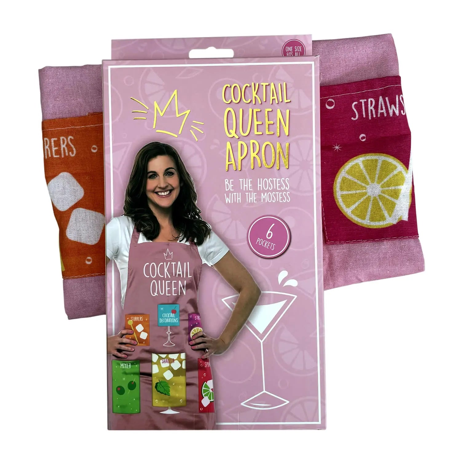 Be the hostess with the mostess in this Cocktail Queen apron. The apron comes with 6 handy colourful pockets, individually labelled for cocktail making supplies such as straws, stirrers, shakers, sprits and decorations.