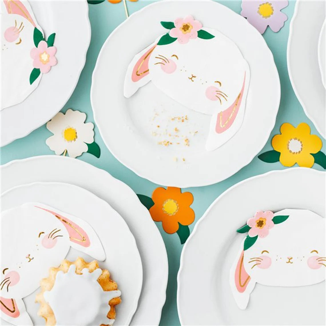 Make your Easter table stand out with these cute bunny paper napkins! The napkins are white with flower decorations and cute droopy ears. They are perfect for your Easter table, Spring party and also are super cute for 1st birthdays or baby showers.