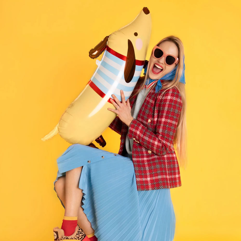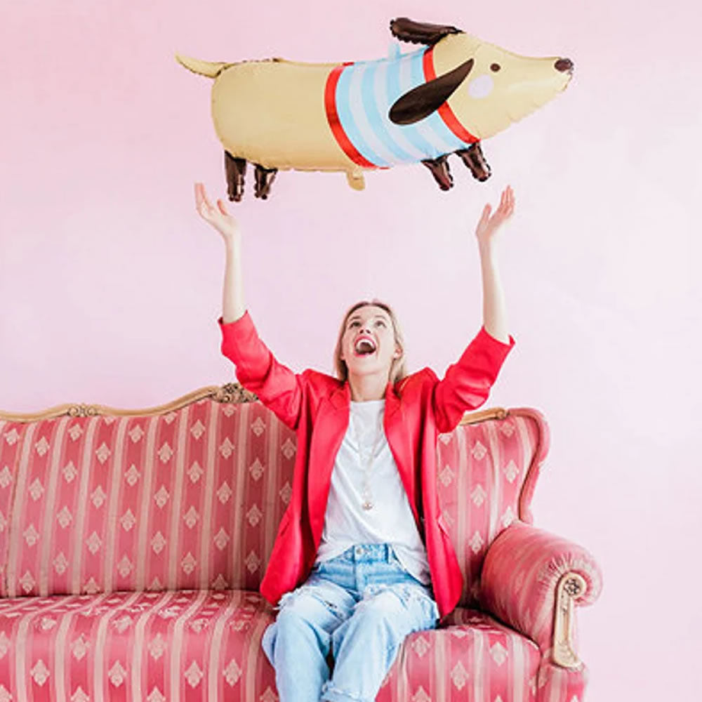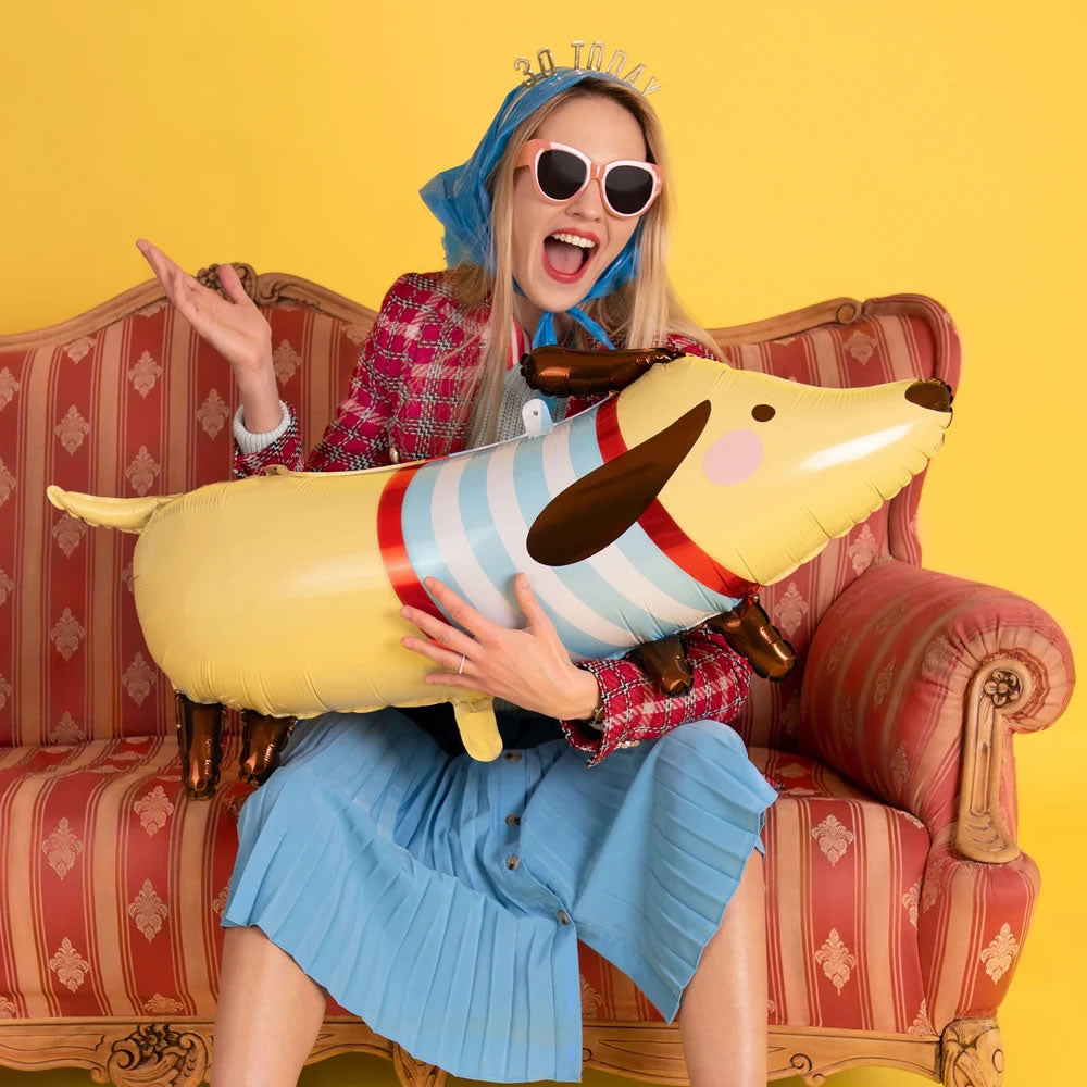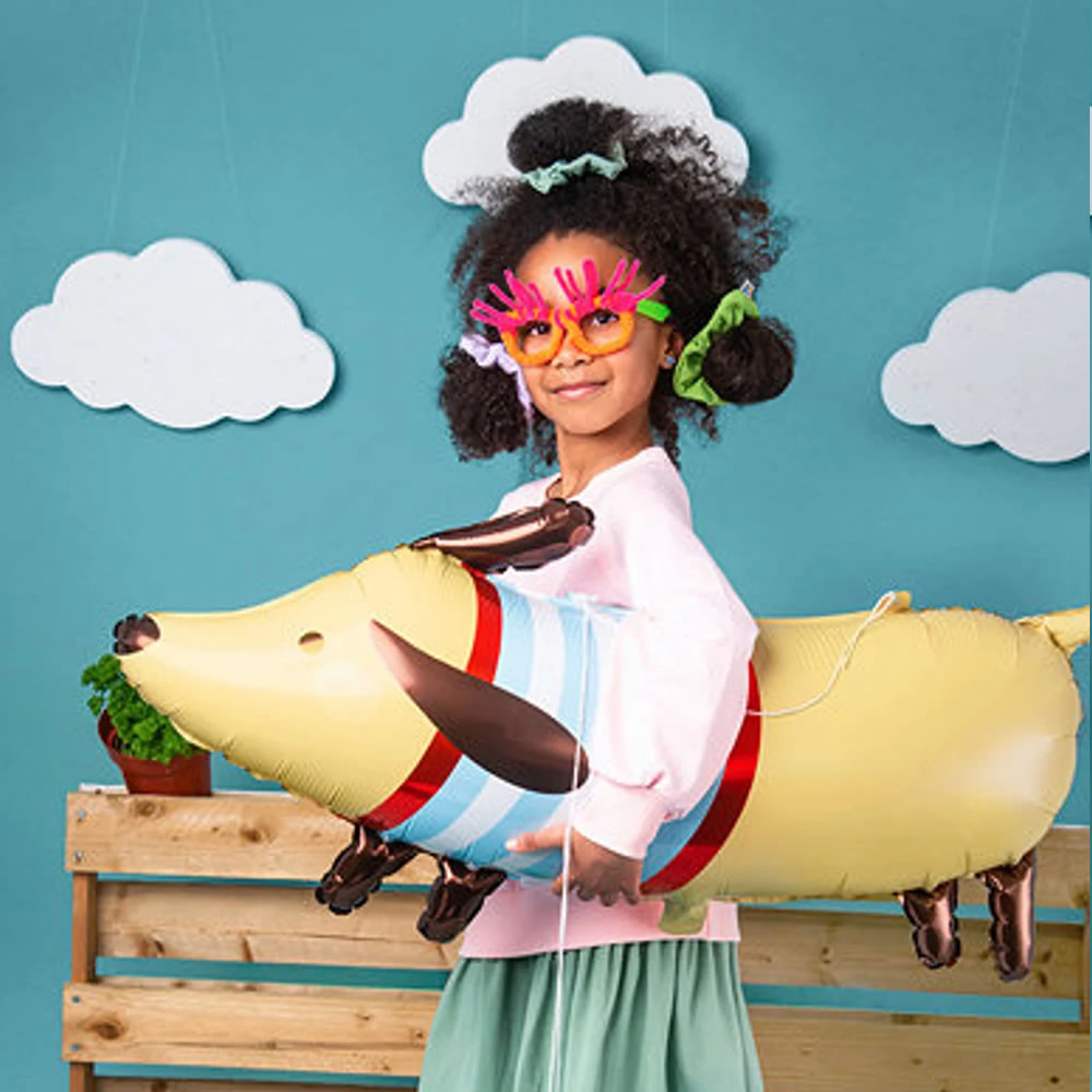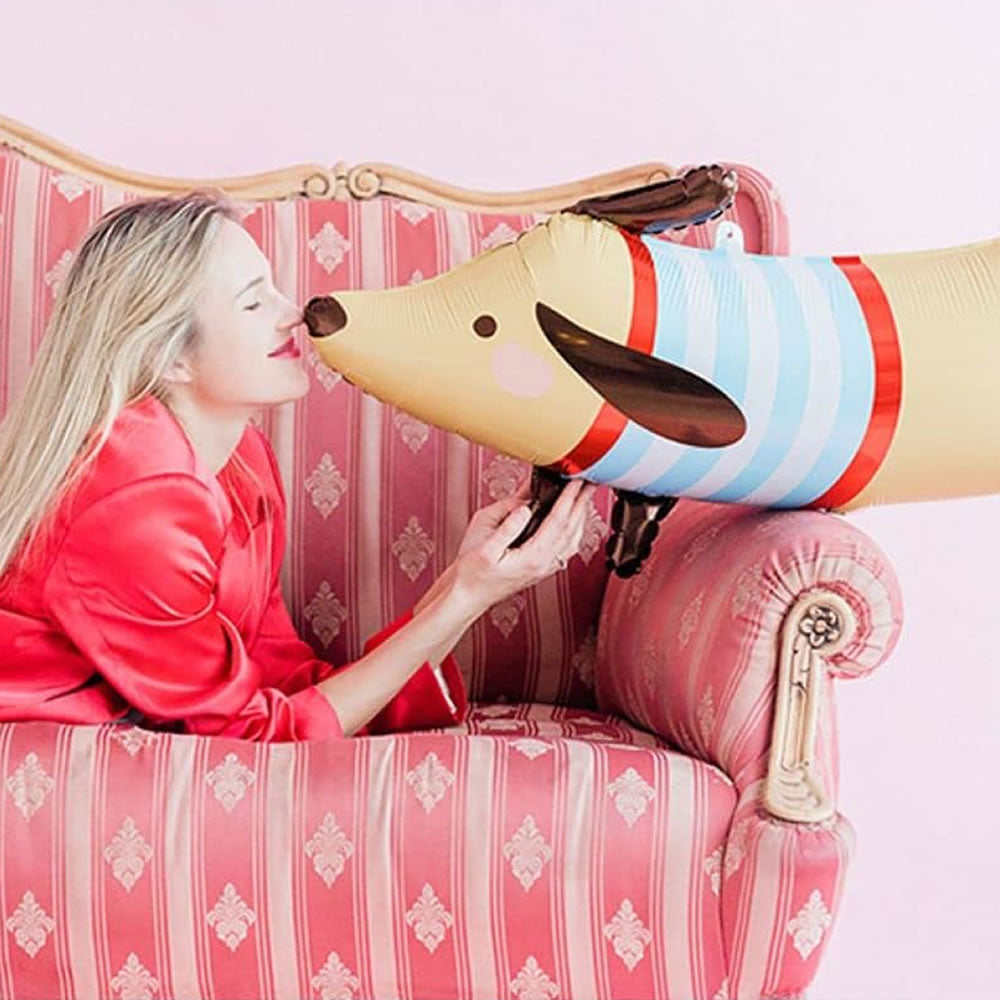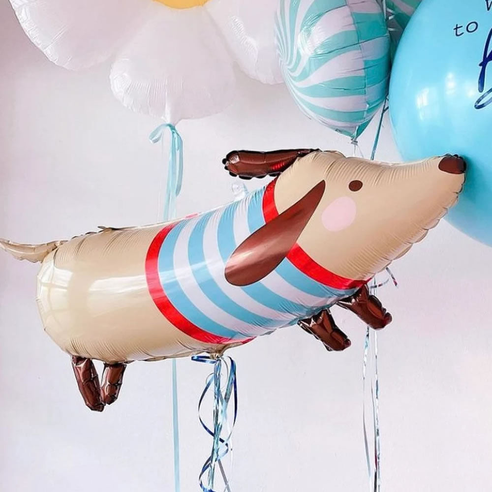 This cute dachshund foil balloon will look great at any party and is sure to put a smile on everyone's face! A great decoration for pet themed parties or generally animal love themed parties. Whether you're throwing a birthday party or simply decorating your space, this balloon is the perfect addition to your celebration.
