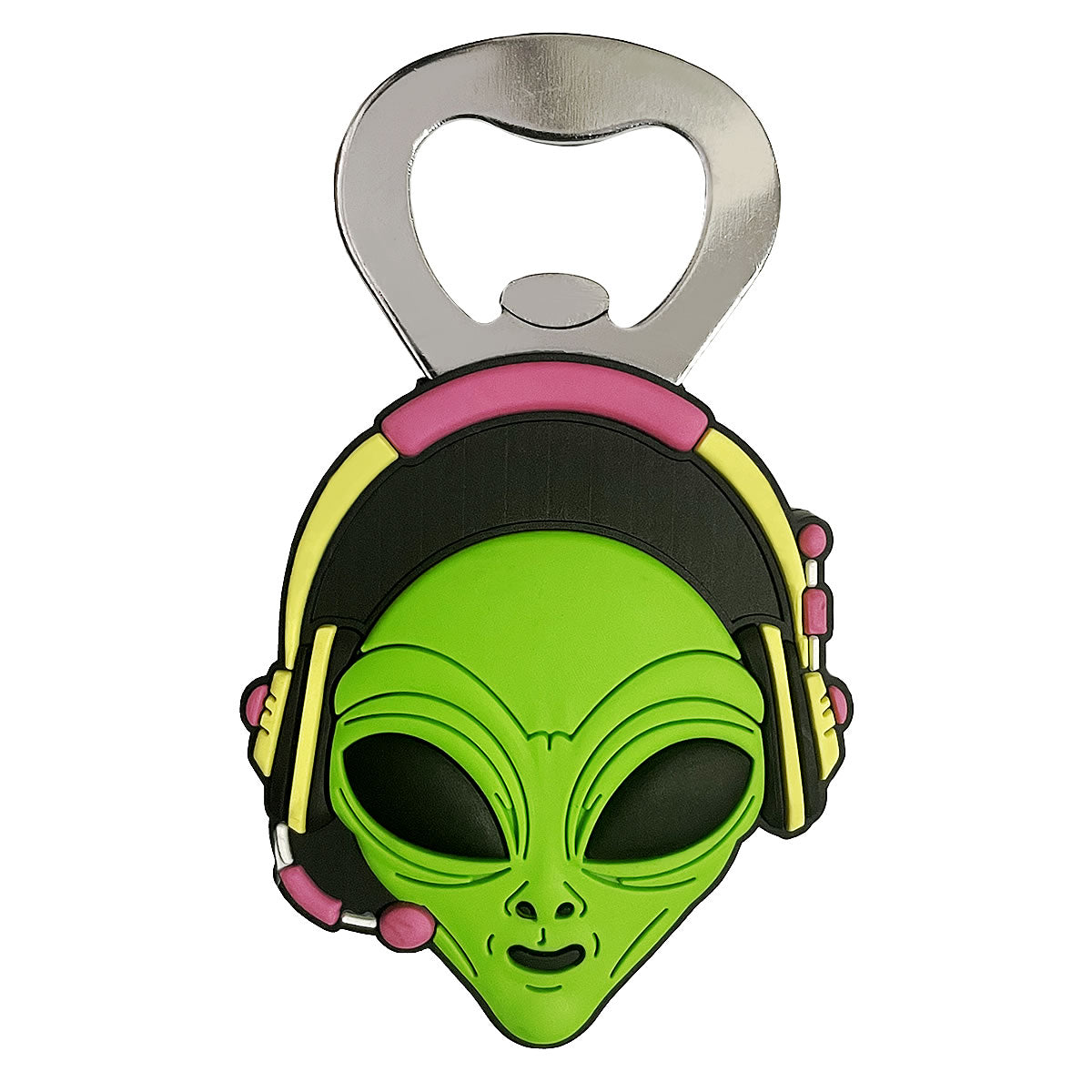 Pop the Top with this slim, lightweight funky alien head bottle opener. The bottle opener also doubles up as a fridge magnet, so you can stick it on the fridge door ready to pop the top off your next beer. Made from durable rubberised material with a unique design of the alien DJ wearing a pair of headphones with a microphone. The ideal gift for sci-fi or alien lovers. The perfect conversation starter at any gathering. Dimensions: height 90mm, width 55mm.