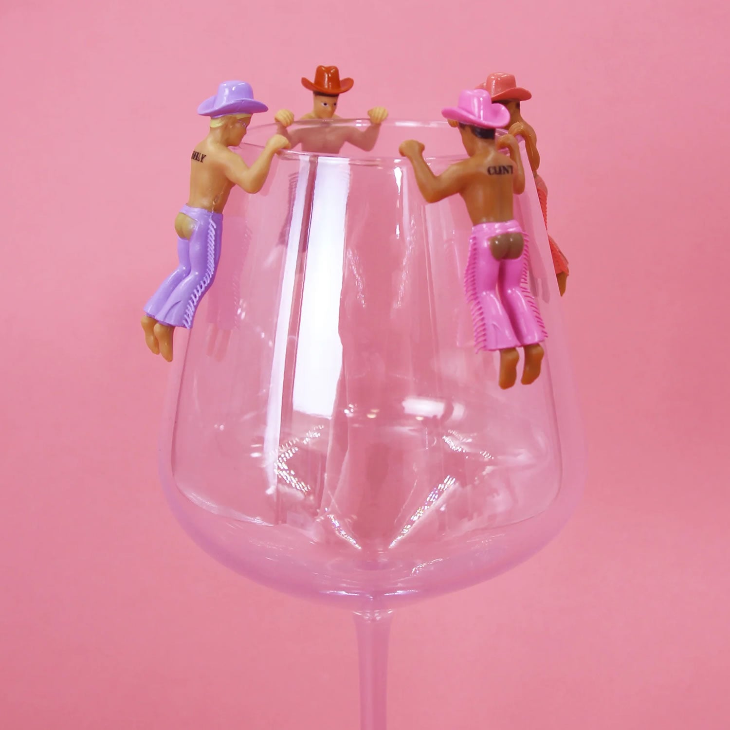They will cling to your glass like they're holding onto a bucking bronco and stay with you all night long. These chaps are great to use as a drink markers to avoid mix-ups and will amuse everyone every time you go to wet your whistle.