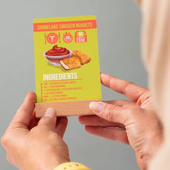With 52 large format recipe cards and a quality wooden stand as a recipe keeper whilst cooking, these air fryer healthy and indulgent recipe cards make the perfect fun gift for friends and family, and will turn cooking stocking fillers to stomach fillers!