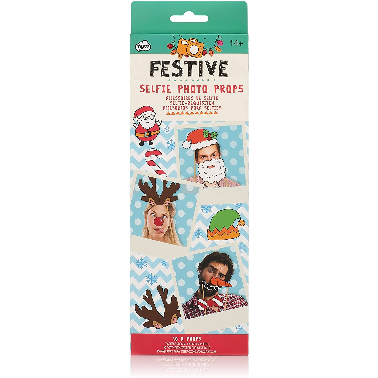 Get in the holiday mood with this fantastic selection of festive selfie props. Christmassy accessories including beards, antlers and candy canes will bring magic and joy to your yuletide selfies. Pack contains 10 different designs, bamboo sticks and sticky dots.