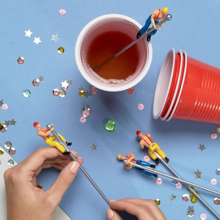 Pack of 4 Fireman's pole drink stirrers complete with hunky firemen. Use these stirrers to mix your drink or as a drink marker. Perfect for house parties, Hen Do's or Girls nights in. Each stirrer measures 21 x 2.5 x 2 cm. Hand wash only. Not suitable for dishwashers or microwaves