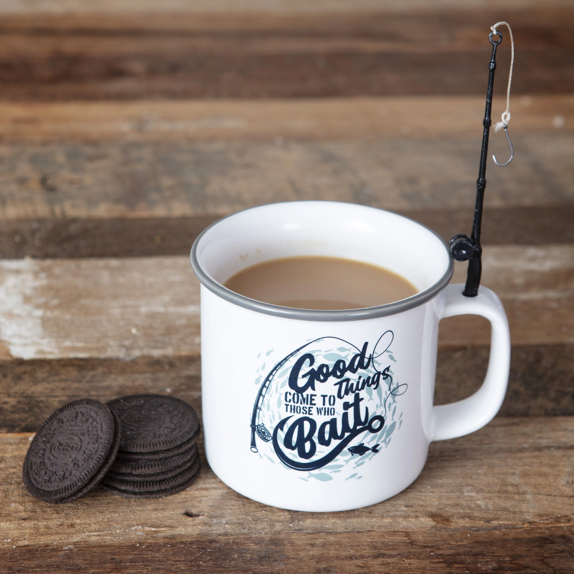Love tea? Reely love fishing? Sit down and take a break with a brew in this fun, novelty fishing mug (after all, good things come to those who bait!) Complete with miniature working fishing rod accessory for dunking your teabag, biscuits or other yummy treats, this ceramic fishing themed gift mug makes a funny gift for a fish mad dad, grandad, husband or man in your life on Father’s Day, Birthday’s and even at Christmas! (What a catch!)