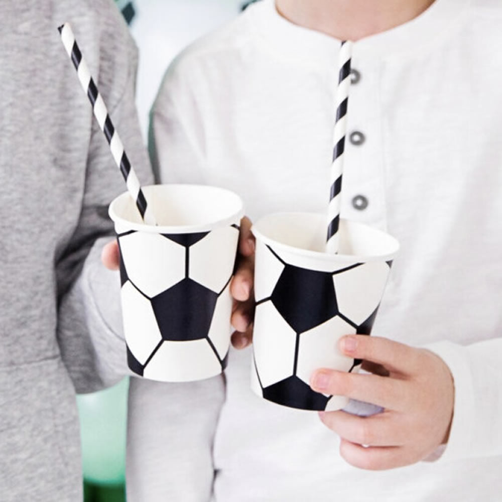 Do you have friends that are crazy about football? These are the prefect paper cups to kick-off their birthday party. They have a football print and are a prefect match to our other football themed party range. Each pack contains 6 cups with 260ml capacity.