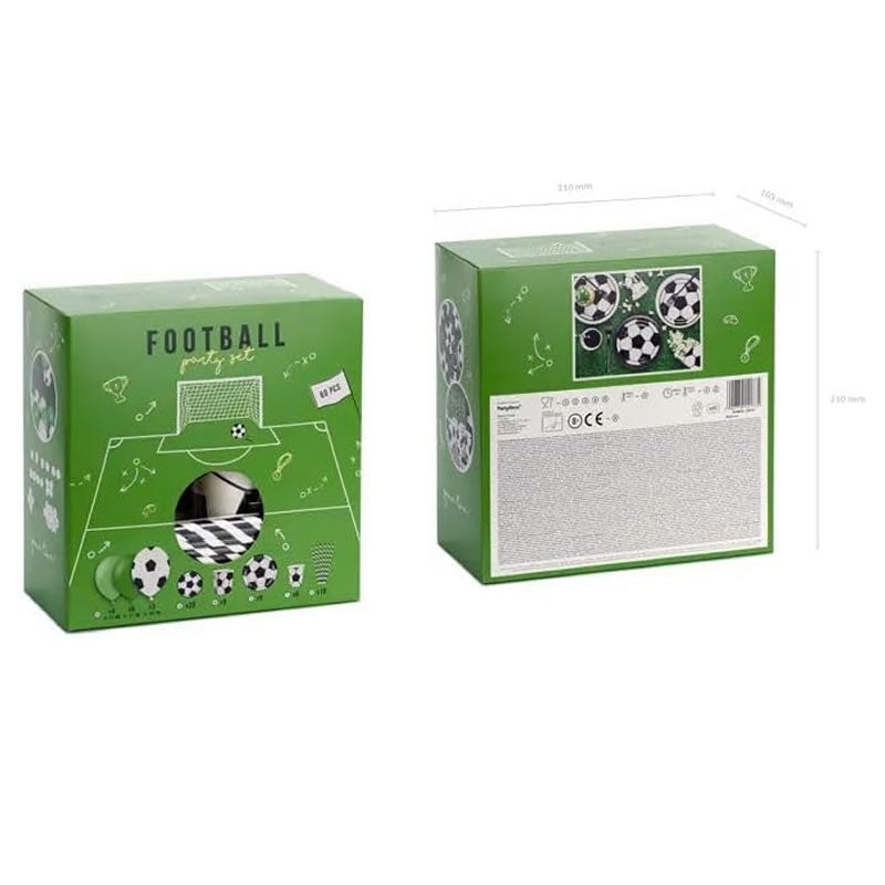 60 piece Party in a Box Set - The Football Party Set includes: paper cups (6 pcs), paper plates (6 pcs), boxes for popcorn (6 pcs), paper napkins (20 pcs), paper straws (10 pcs) and latex balloons (Pastel Pure White 3 pcs, Pastel Emerald Green 5 pcs, Pastel Green 4 pcs)