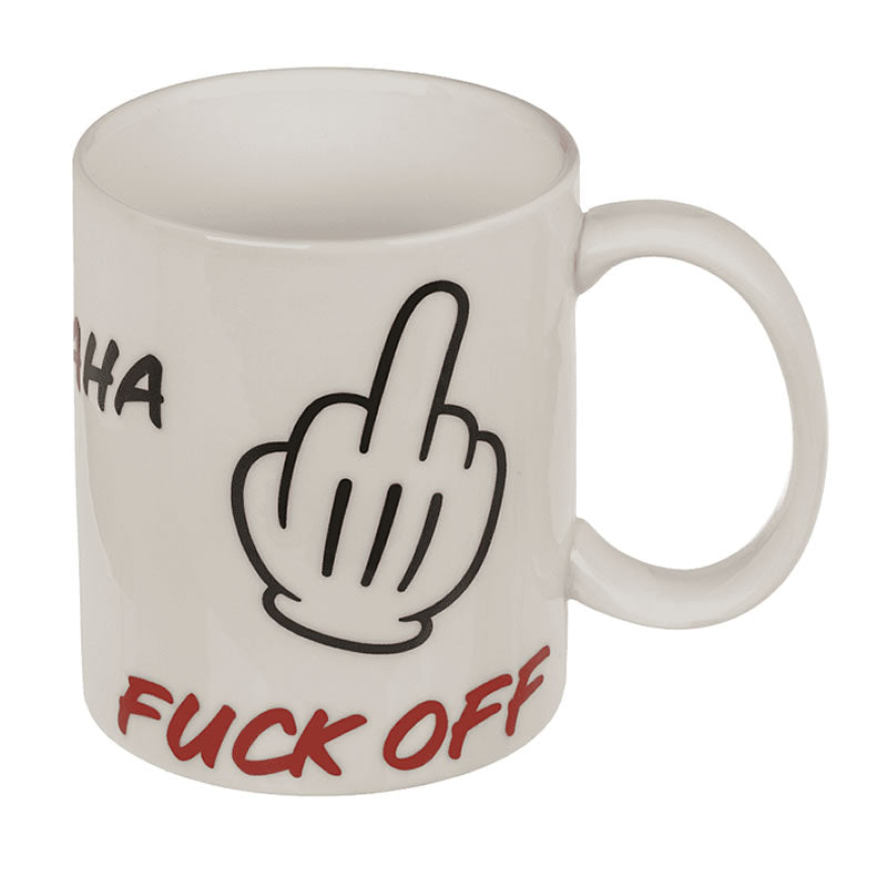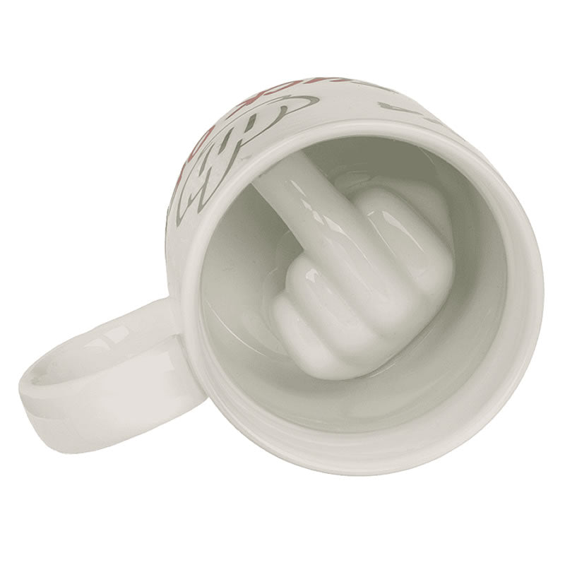 Boldly irreverent ceramic mug featuring a cheeky message and matching graphic. This amazing mug delivers attitude with every sip and includes a surprise message on the bottom. Perfect for those with edgy humour or as a provocative gift. Adult-oriented design; hand wash recommended.