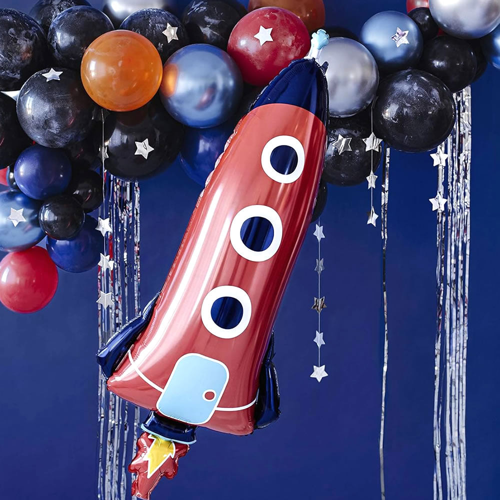 Blast off with our Giant Rocket Balloon! This massive 115cm tall space-themed showstopper features bold red and navy colours with eye-catching details. Perfect for making any celebration truly astronomical, this high-quality foil balloon can be helium-filled for maximum impact. Dare to make your party decorations legendary!