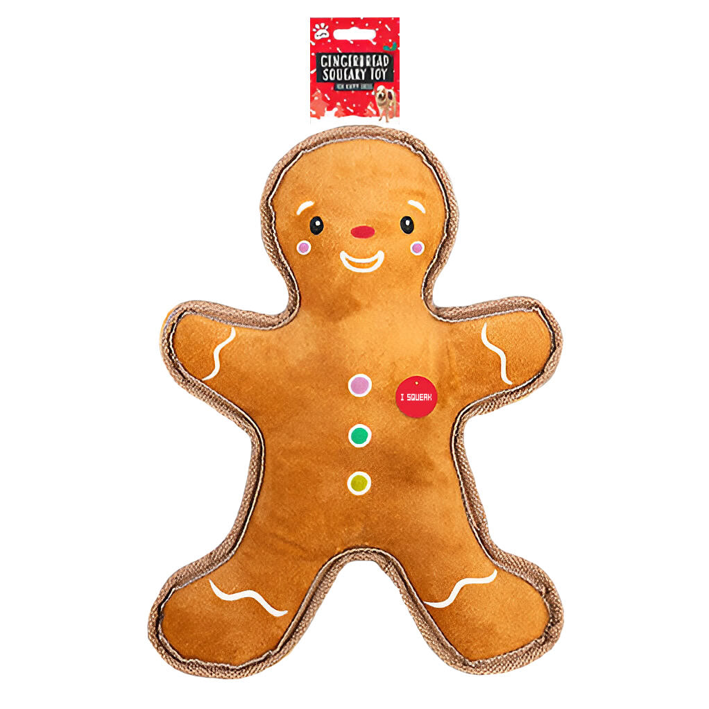 This durable gingerbread-shaped toy with stitched and embroidered features and a squeaker in the middle is a great way to bring joy to your pup this Christmas.