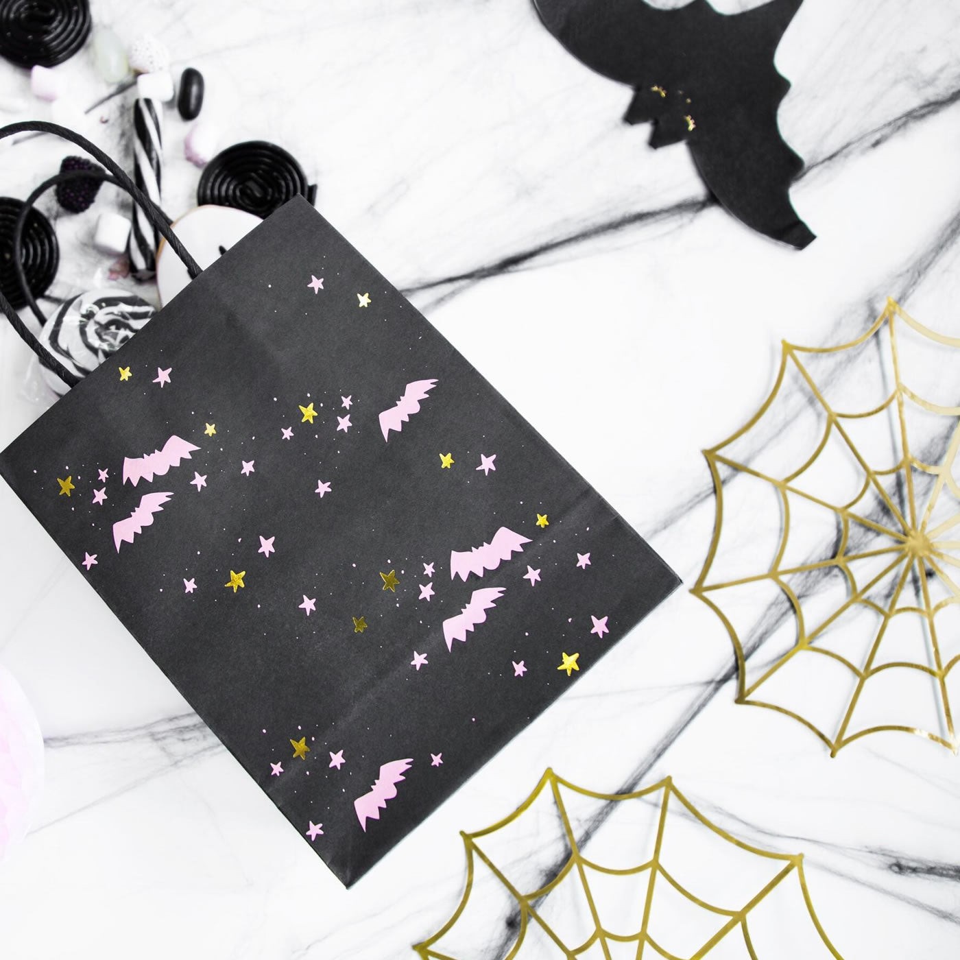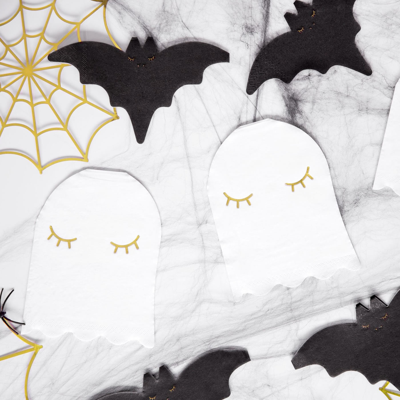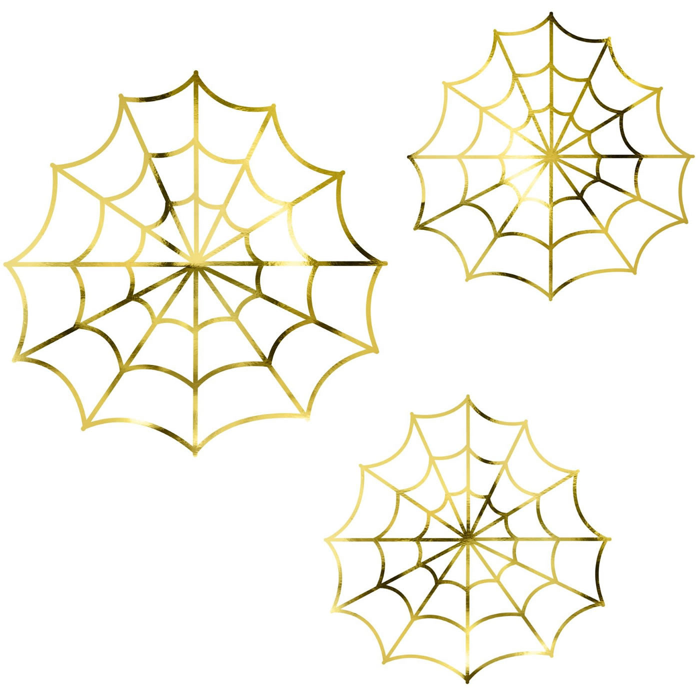 Spook up your Halloween festivities with these mirrored gold paper decorations in the shape of spiderwebs. Ideal for gatherings and those seeking Halloween treats. Transform your windows, doors, and walls into a chilling scene with these Halloween spider webs.
