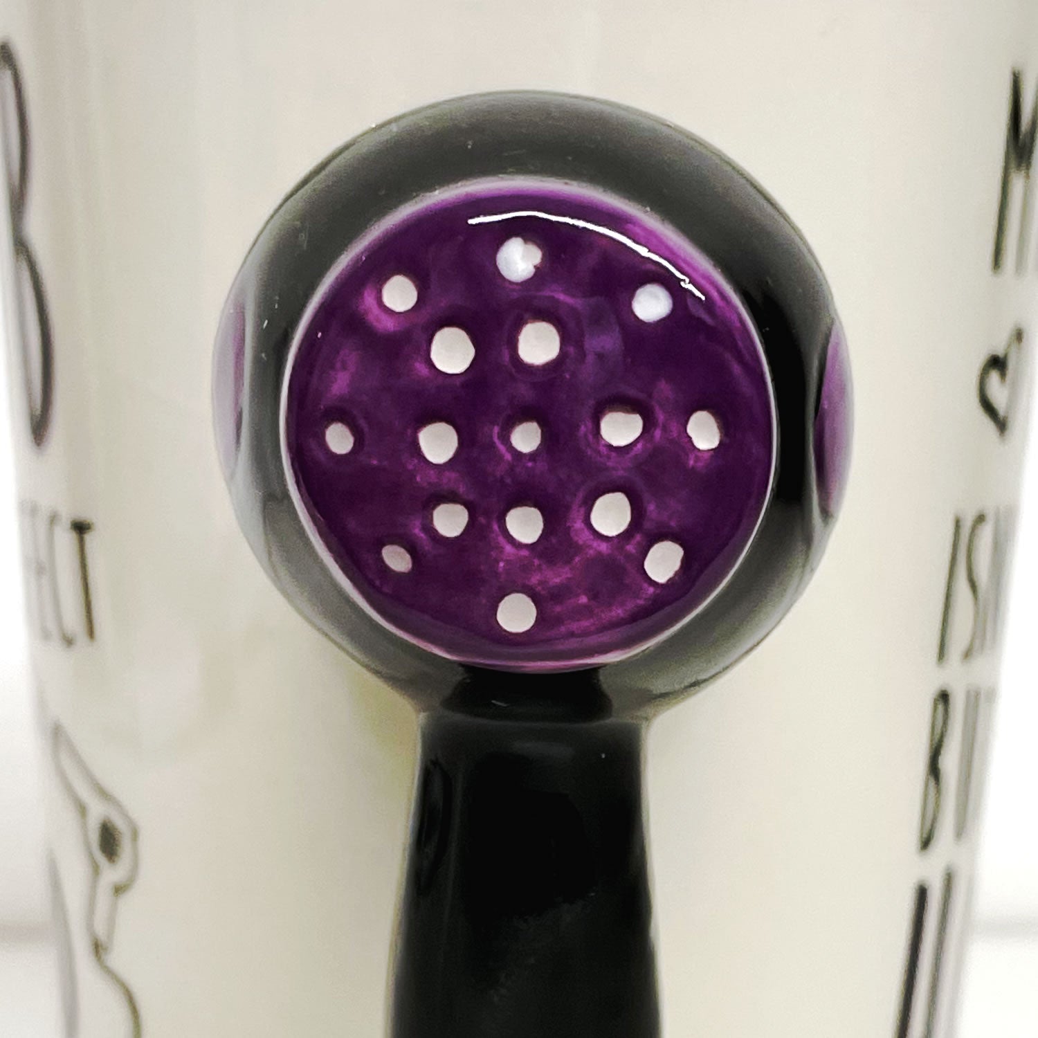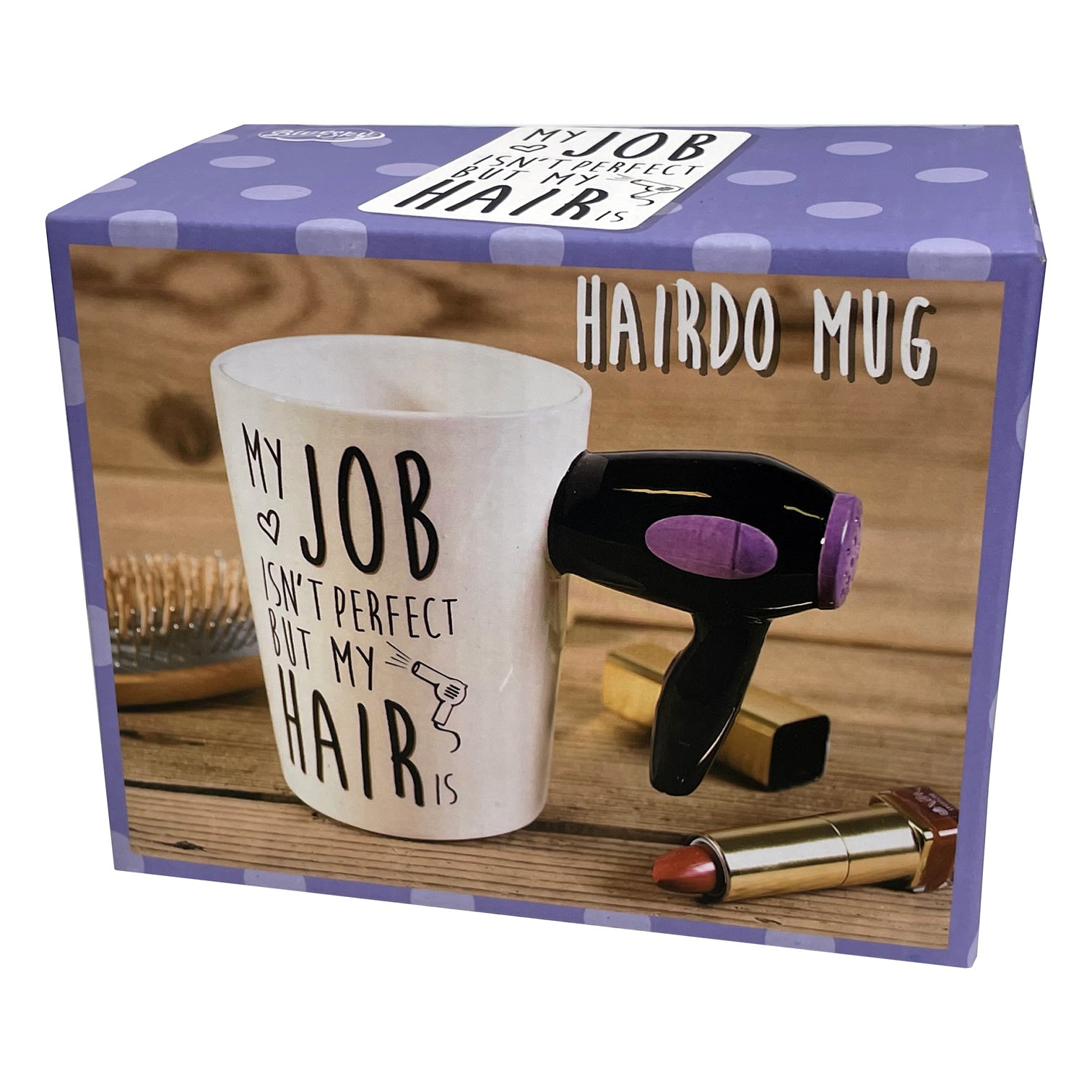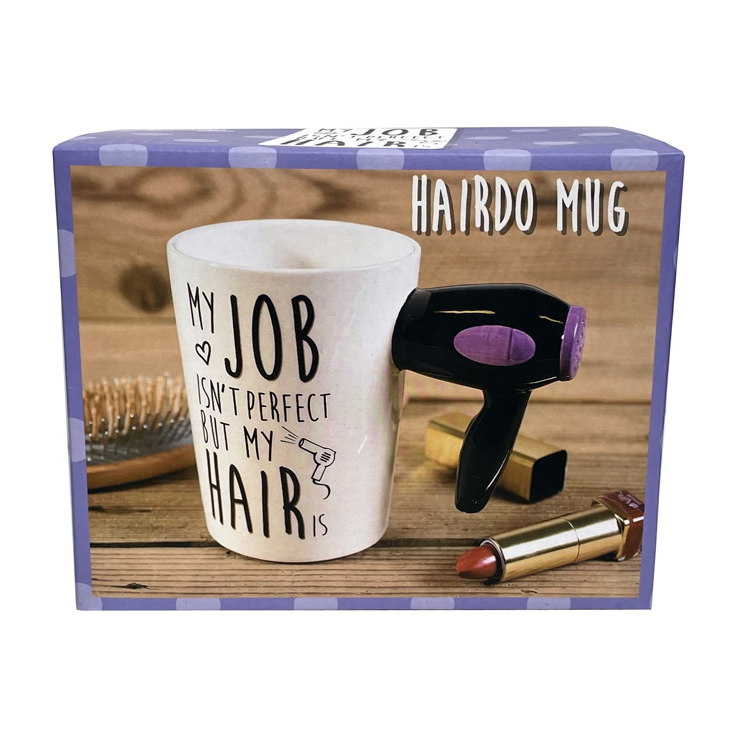 This uniquely designed ceramic mug with a hairdryer handle and 'MY JOB ISN'T PERFECT BUT MY HAIR IS!' inscription is an ideal gift for a friend, co-worker, a loved one for a special occasion, or simply because they would love it.