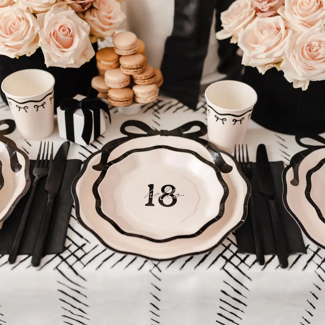 Mark the big 18th birthday with this bold black and white foil balloon. Featuring a sharp design with a black bow and scalloped edge. Fill it with air or helium using the included straw. This standout balloon adds a sleek, daring touch to any party and makes photos pop.