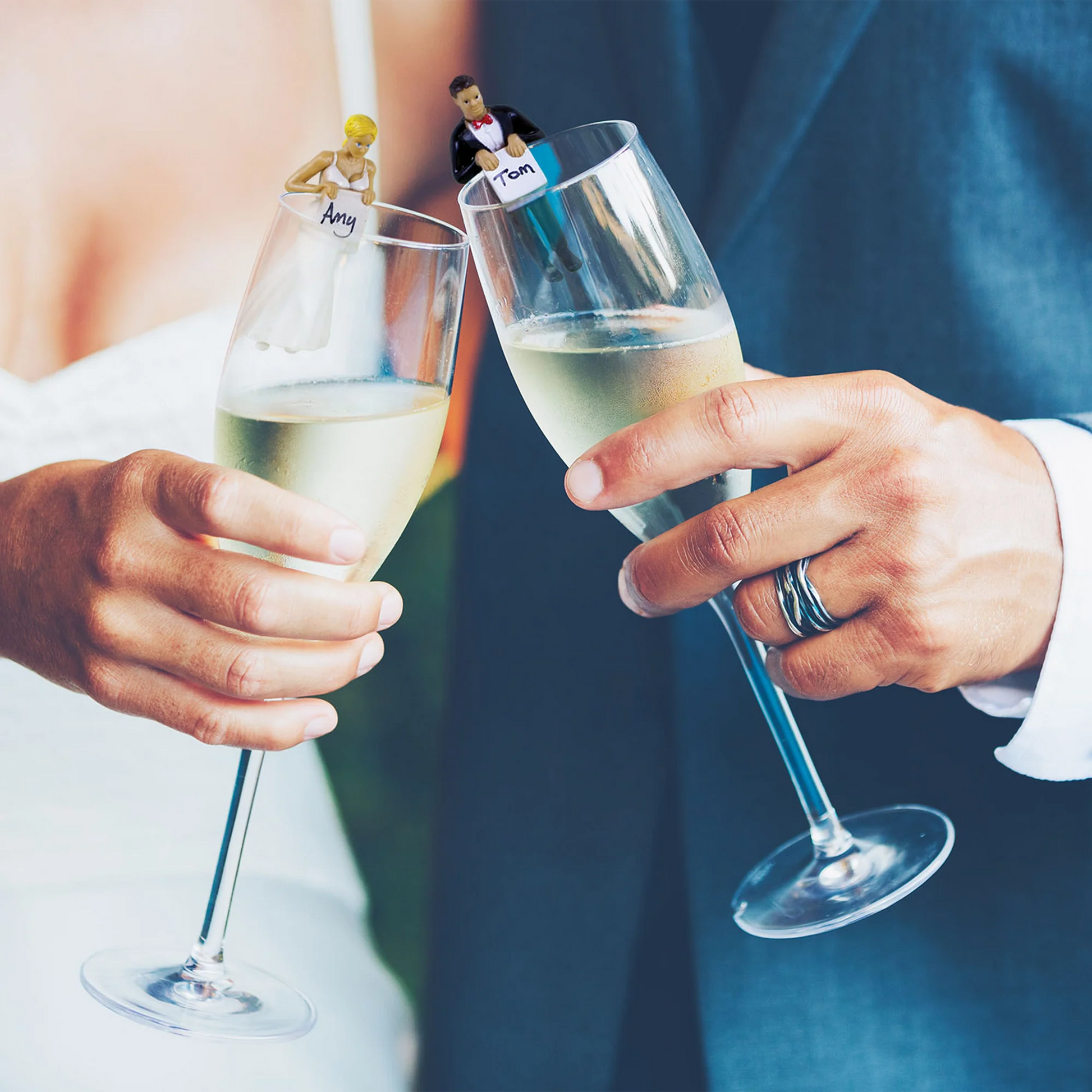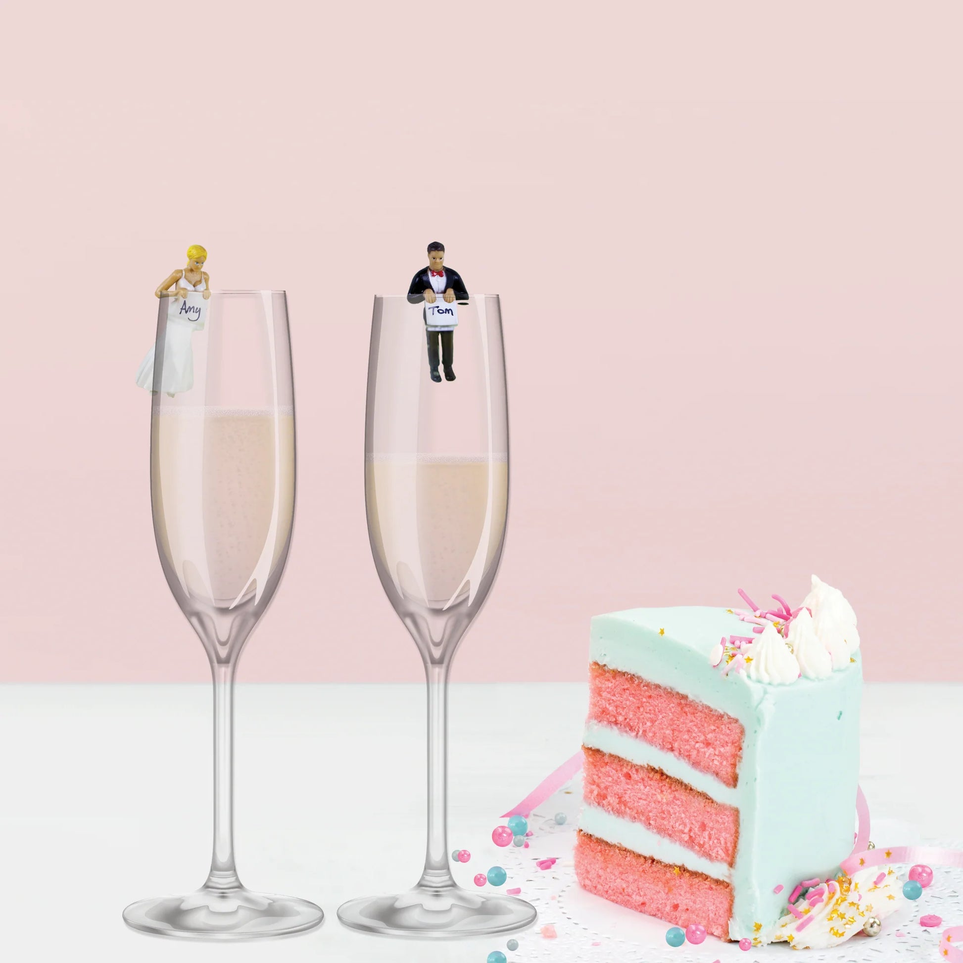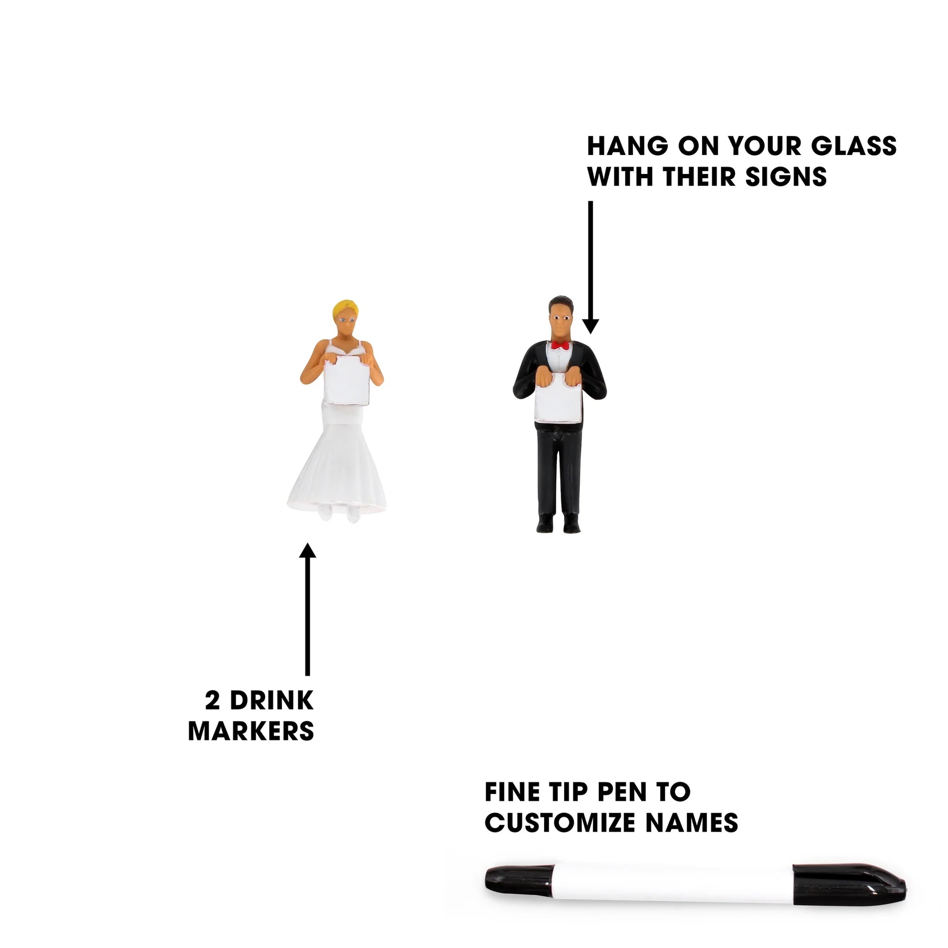 This delightful set of newlywed drink makers will make a fabulous addition to a happy couple's special day. Just hang them merrily on the bride & groom’s champagne flutes! Comes with a fine tip pen to customize their signs.