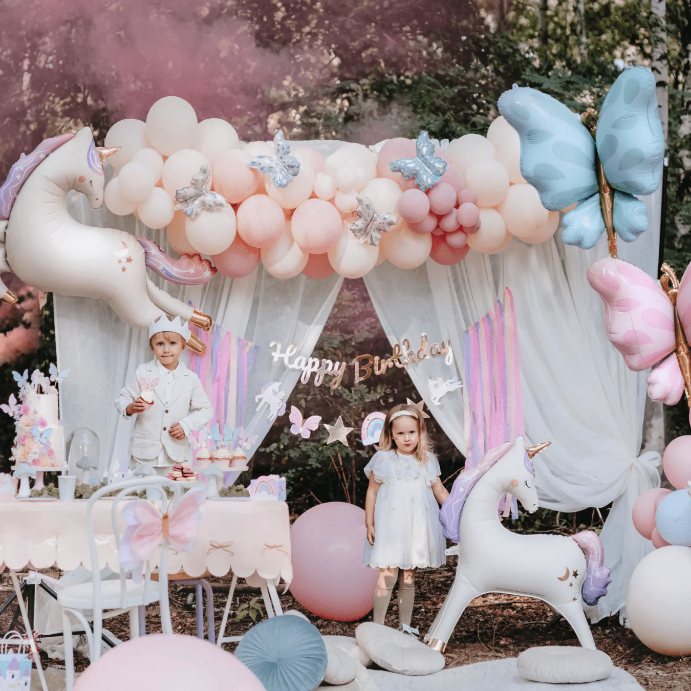 Add a dazzling touch to your party with these holographic butterfly balloons. Featuring three pastel blue, purple, and pink butterflies with shimmering, light-catching wings, they bring a magical vibe to any celebration. Sized perfectly for garlands or standalone décor, these butterflies elevate your event with bold, whimsical flair.