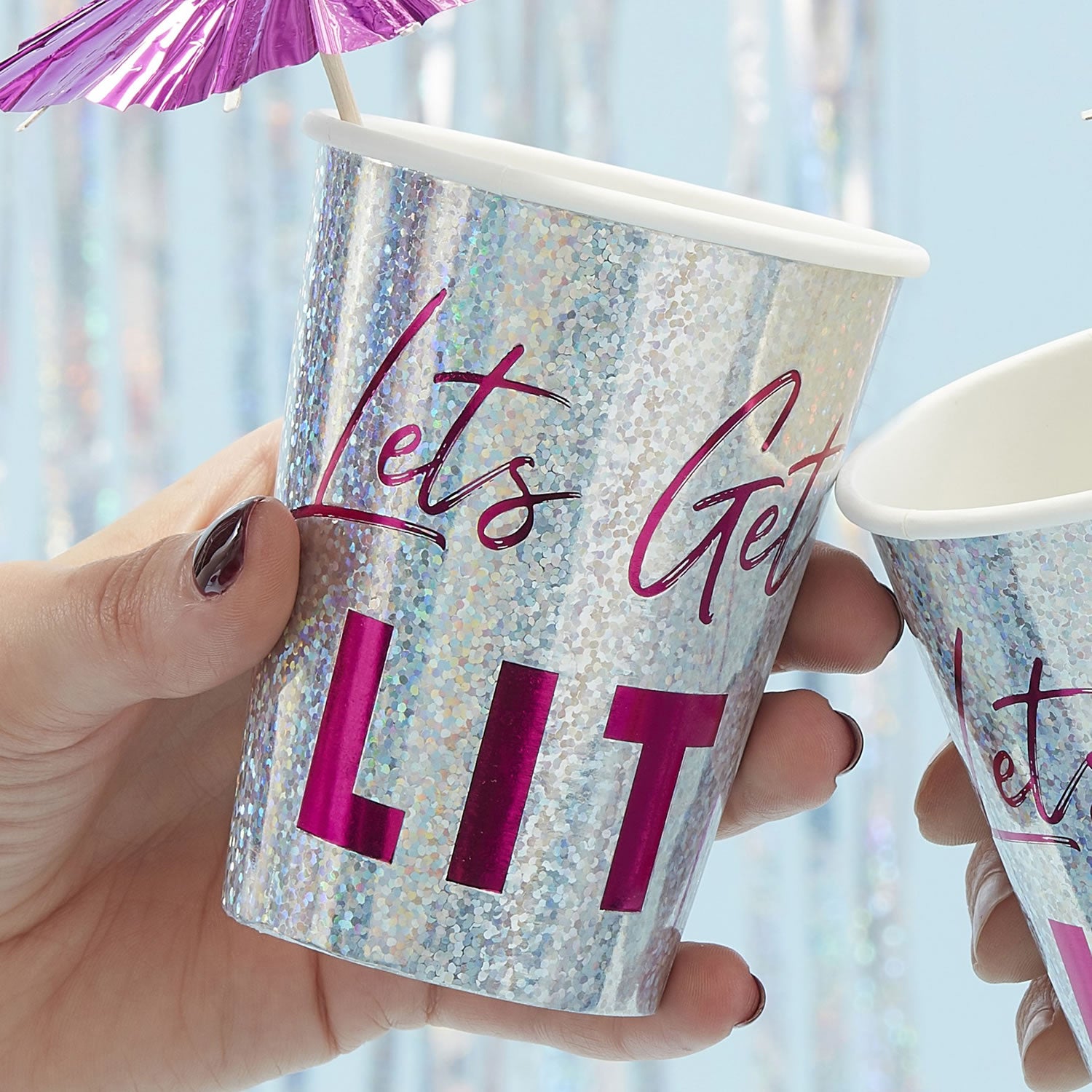 Use our stunning holographic 'Lets Get Lit' Cups at your next party. A must have party essential for birthday parties and festive gatherings!