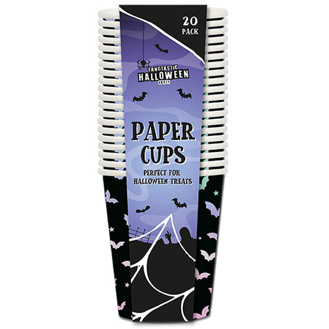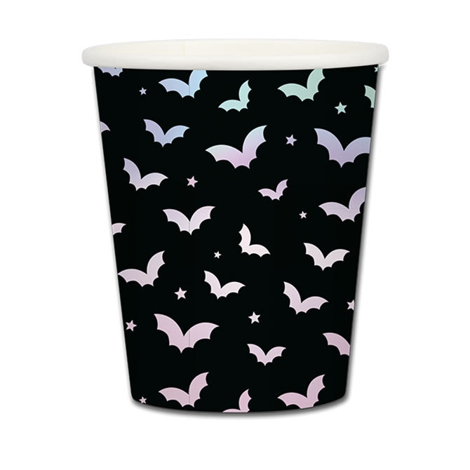 These black Halloween-themed paper cups are perfect for any spooky celebration. With 20 cups in each pack, each adorned with a holographic pattern of bats, you'll have everything you need for a ghoulishly good time.