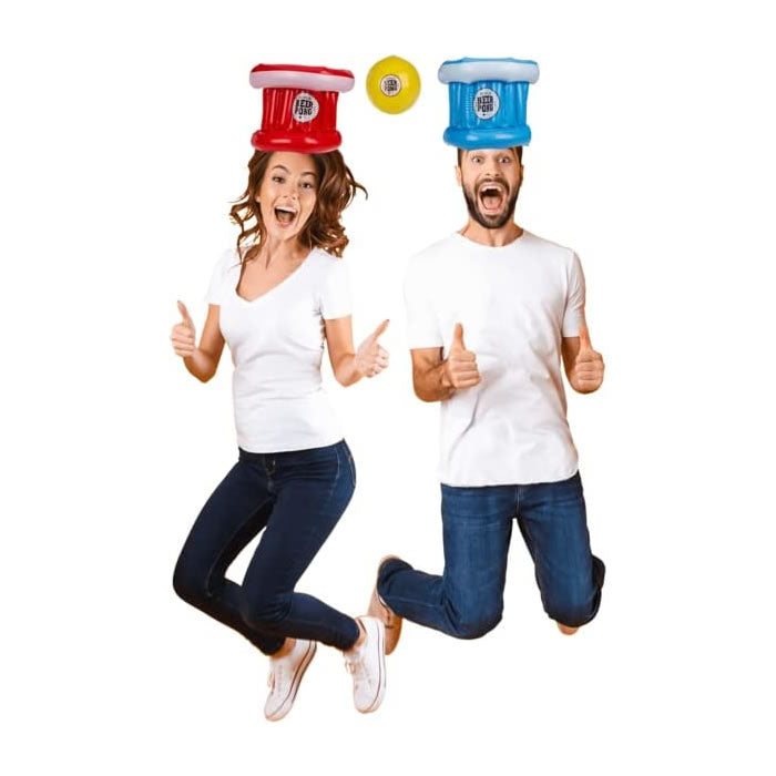 Just inflate the headpieces, place them on your heads and attempt to catch the inflated ball in your beer hat. If you successfully land the ball in your opponent’s hat, they have to down their drink. Hours of fun to be had, or maybe 20 minutes you will be on your back.