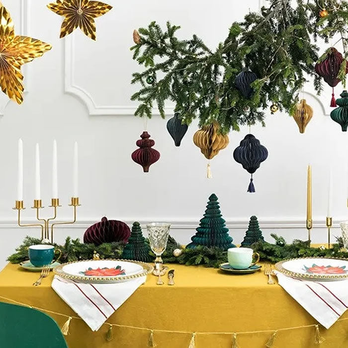 Indulge in the elegant and sophisticated world of art with this paper Icicle Honeycomb Bauble. This exquisite Christmas ornament adds a touch of luxury as it hangs gracefully on your tree, adorned in beautiful burgundy or bottle green hue. Elevate your holiday décor this Christmas with this tasteful addition.