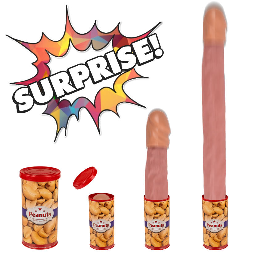 Novelty Jumping Willy hidden in a Can of Nuts. An adult spin on the classic snake in a can prank. The spring loaded willy jumps out when the lid is opened. Great adult novelty joke to surprise grandma or the perfect stocking filler, Secret Santa gift.