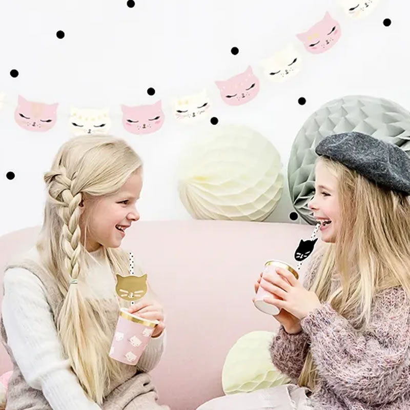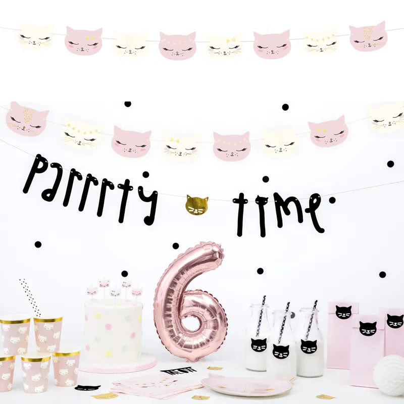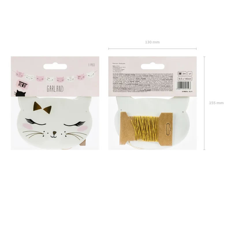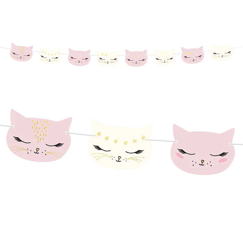 Bring a touch of whimsy and charm to your celebration with this delightful cat garland. Measuring 1.4 metres in length, this festive banner is adorned with an array of charming kitten illustrations, perfect for adding a playful and feline-friendly touch to your birthday, baby shower, wedding, or home décor.