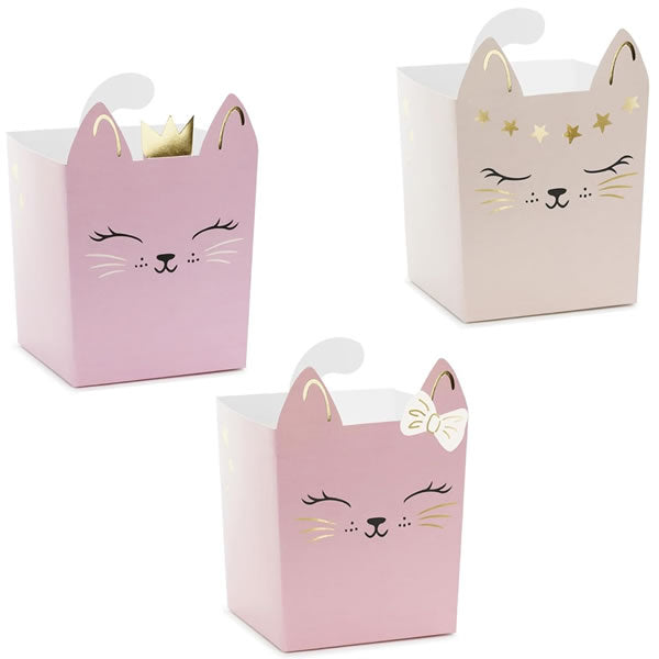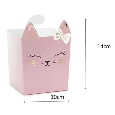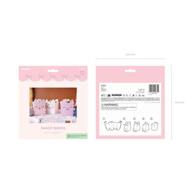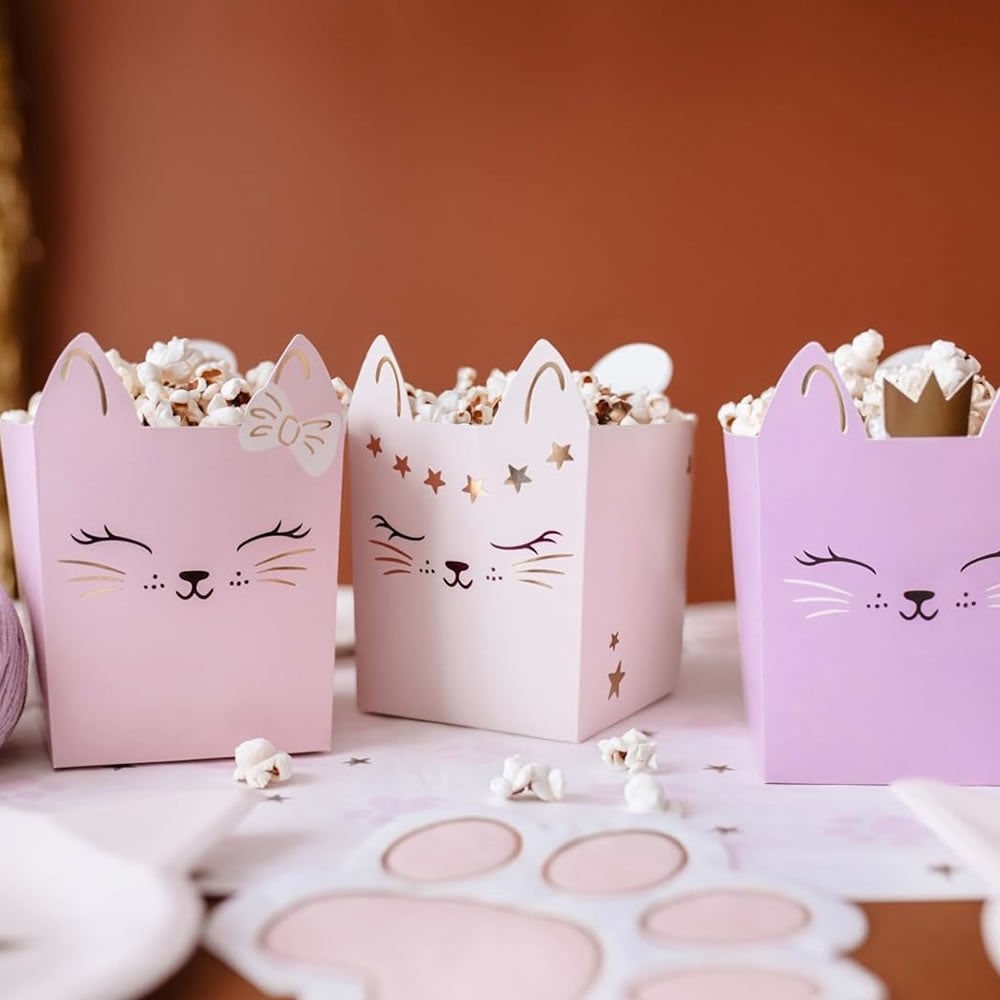 Snack boxes with cute kitty/cat design, puurfect for your parties or home film nights. Each box measures 10 x 14 cm and offers the ideal size to enjoy your favourite snacks. The adorable kitten design in soft colours provides a touch of fun and charm, making every occasion special. These boxes are easy to assemble and ideal for theme parties, children's birthdays or any celebration with friends and family.