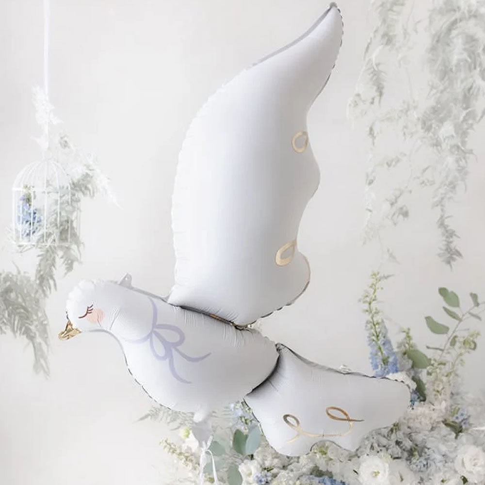 This stunning foil Dove shaped balloon is perfect for communions, weddings and other celebrations. Perfect for standing-out decorating option to include in themed displays and designs! The pure white colour with small gold décor makes it versatile when pairing with various colours and styles!