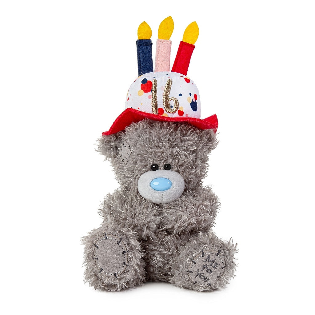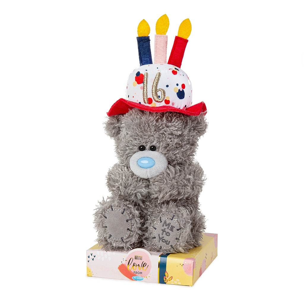 This adorable plush bear is the perfect gift for a teenager celebrating their sweet sixteenth birthday. Cute Tatty Teddy is wearing a cupcake-shaped hat complete with candles and the caption '16 today' ; the bold, striking colour palette gives an on-trend twist to this lovely cuddly gift that's sure to be adored by your daughter, son, granddaughter, grandson, sister, cousin, friend - or anyone celebrating their milestone 16th birthday. Every single Me to You bear is made with love, featuring hand-sewn patches and a cute blue nose. It's no wonder Me to You has captured millions of hearts, all over the world. Perfect as a special gift, with an enduring sentiment that will be treasured for years to come!