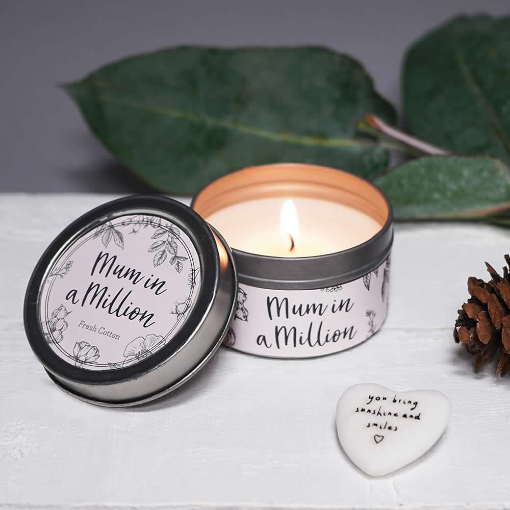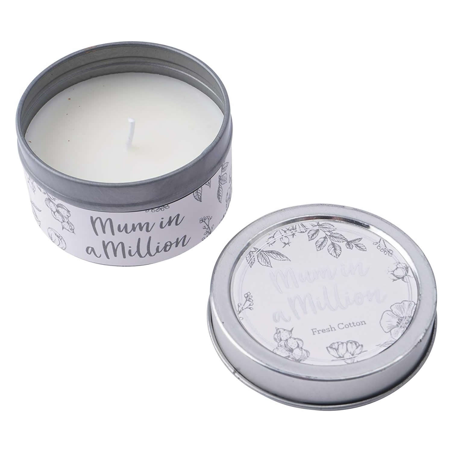 Mum in a Million Tin Candle White Moss & Cotton