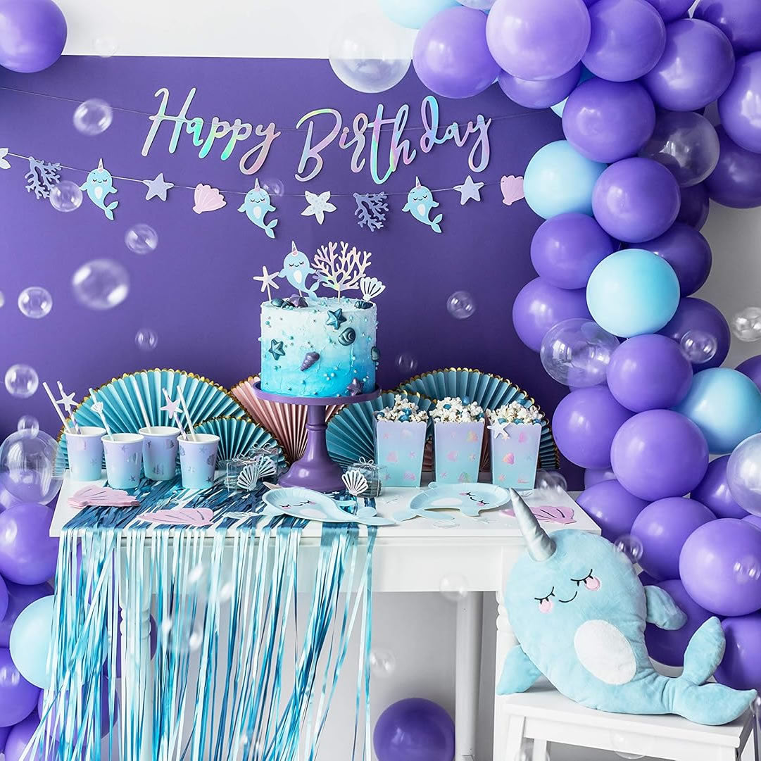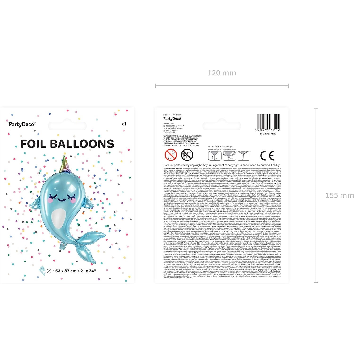 Add some whimsical magic to your party with this gorgeous narwhal balloon with iridescent crown. Perfect party decoration accessory or novelty gift for narwhal lovers, and under the sea theme.