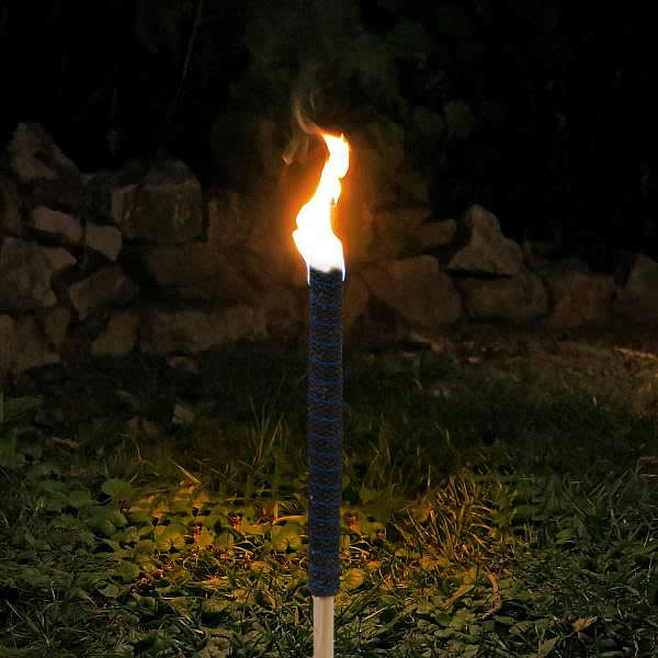 Premium quality, wax impregnated rope wound torches. Come complete with wooden handle and card disc hand guards to minimise risk from drips. Can be used as a processional torch or placed in the ground. Great for Processions, Halloween, Hiking, Garden Parties, BBQ and Camp Fires