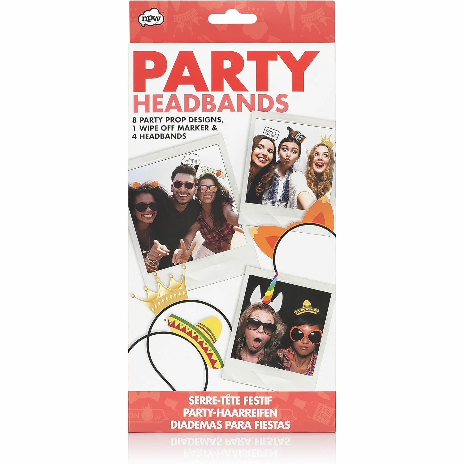 - Pack of 4 headbands with 8 clip on props and dry wipe marker pen.