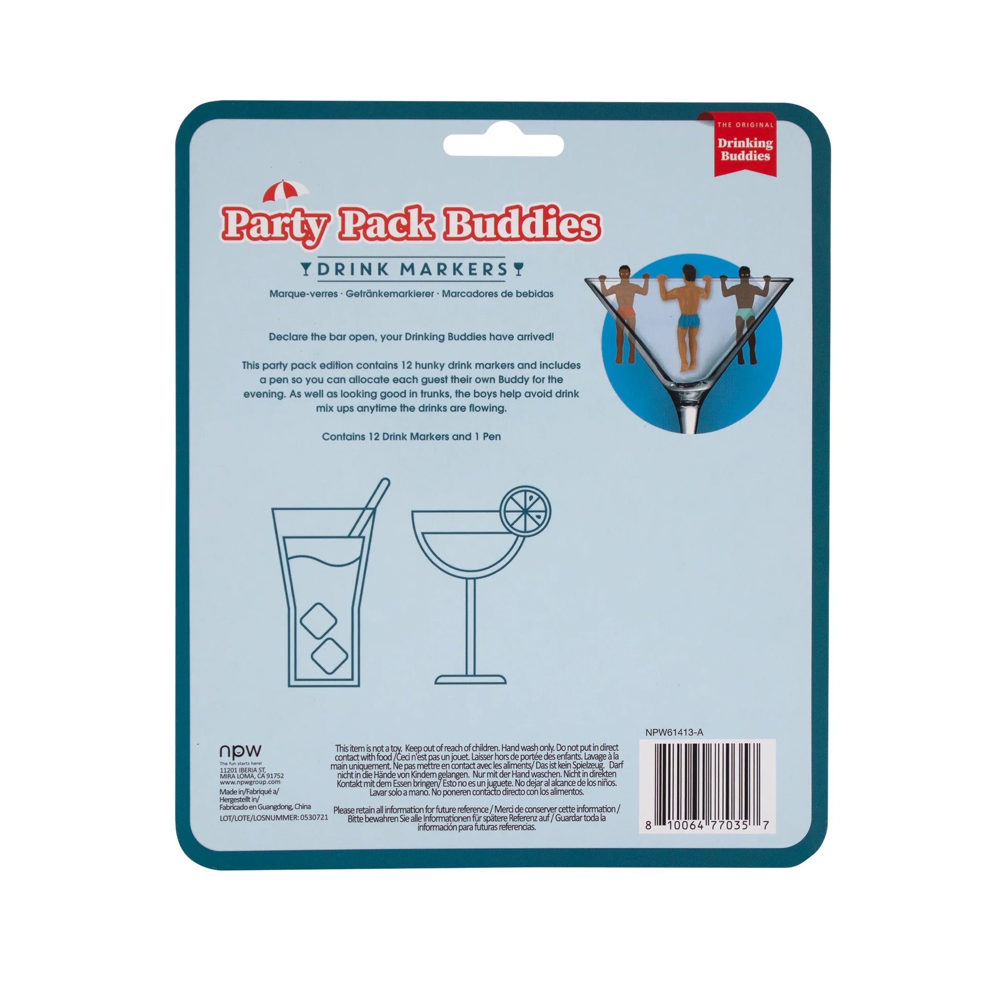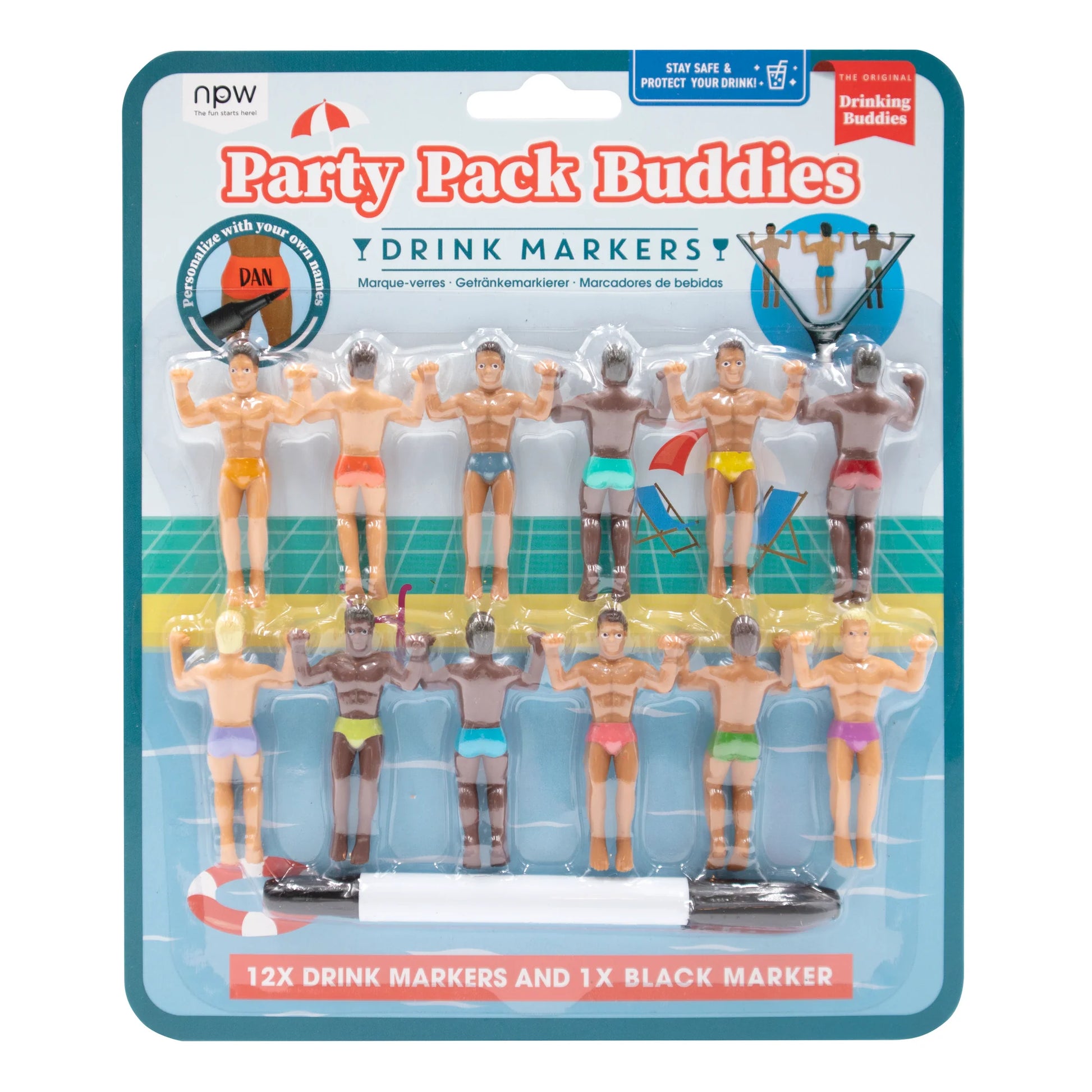 Declare the bar open, your Drinking Buddies have arrived! This Party Edition pack contains 12 hunky Drink Markers and includes a pen so you can allocate each guest their own buddy for the evening. As well as looking good in trunks, the boys help avoid mix-ups anytime the drinks are flowing.
