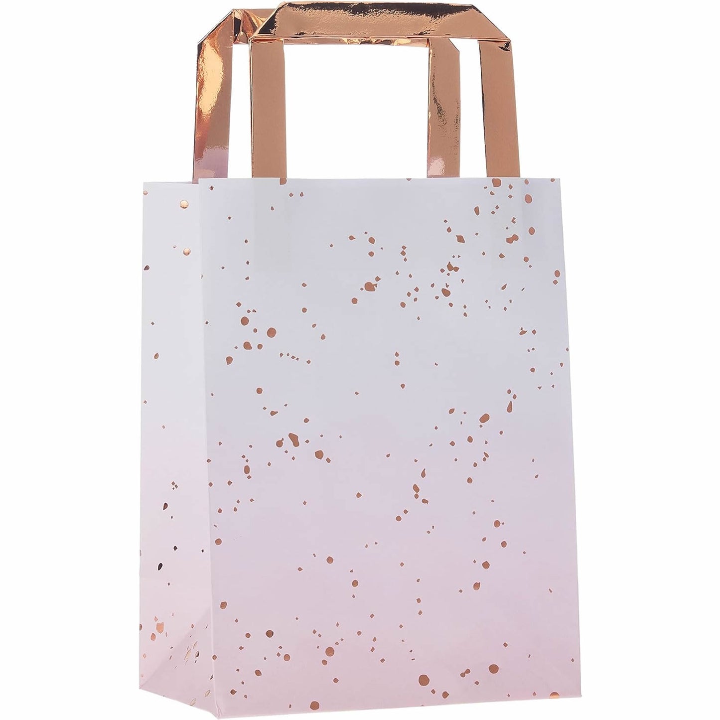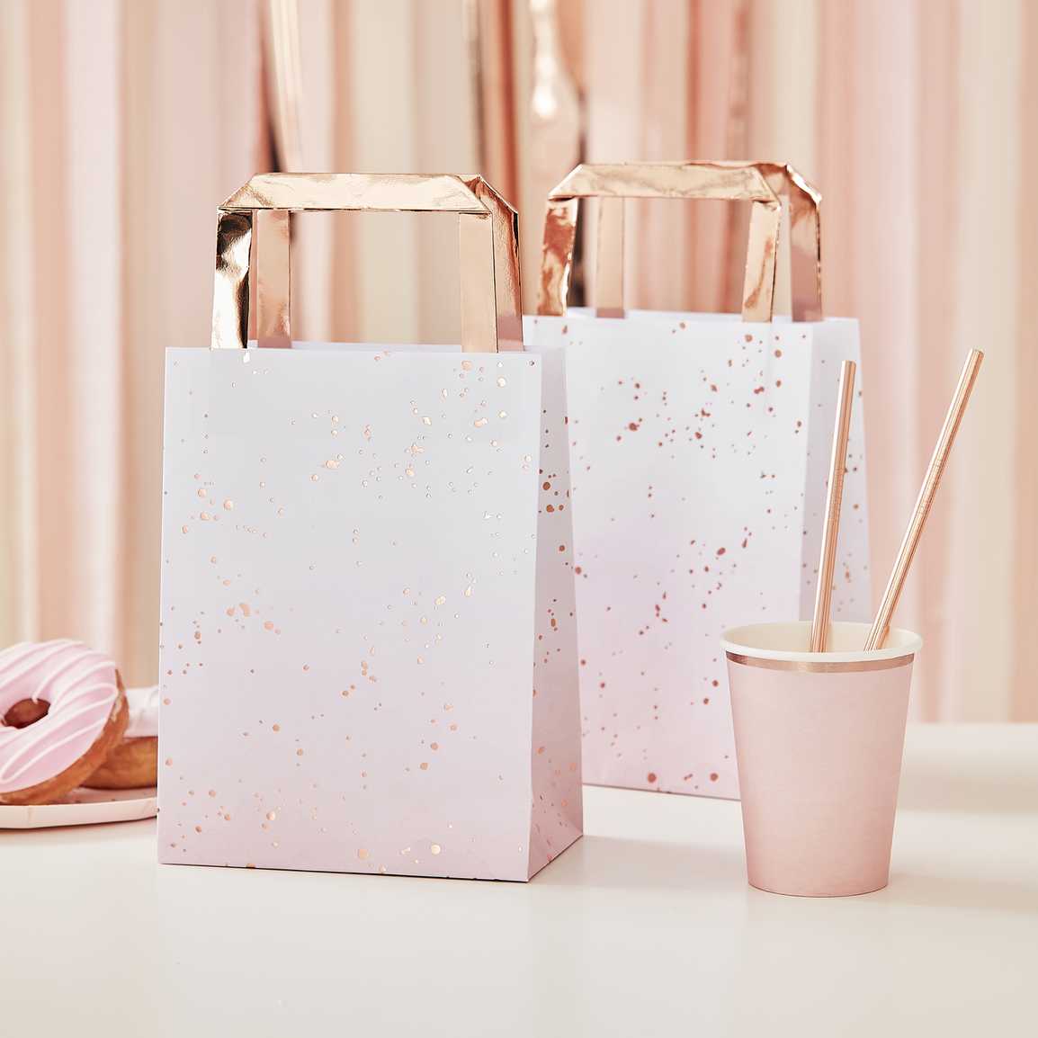 Send your guests home with a smile and some swag in these glimmering paper party bags rose gold party bags - the pastel pink and rose gold design will suit any theme!